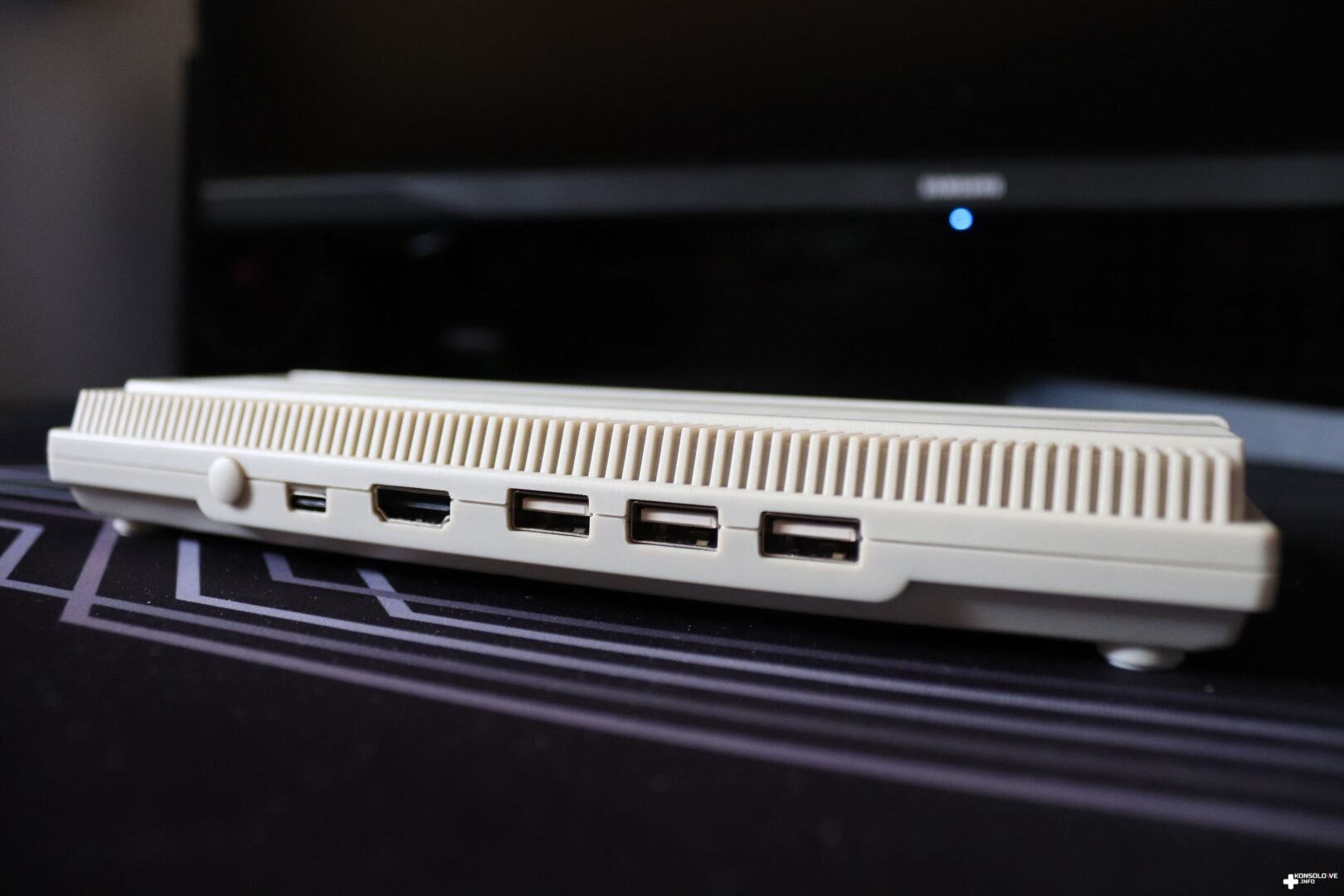 O tym, że nasza konsolka jest zasilana informuje nas oczywiście odpowiednia dioda na górze urządzenia. Następnie, aby ją włączyć, wystarczy po prostu nacisnąć stosowny przycisk. Po około 2 sekundach naszym oczom ukaże się prosty interfejs THEA500 Mini, z którego po prostu wybieramy gry. Należy zaznaczyć, że nie będziemy mogli programować za pomocą testowanego sprzętu. Nie jest on bowiem wyposażony w odpowiednie narzędzia systemowe i nie znajdziemy tu Workbencha. Natomiast sama klawiatura, która momentalnie przykuwa nasz wzrok to jedynie atrapa. Żadnego z przycisków nie da się wcisnąć i stanowią one zaledwie ozdobę. Nie powinno to jednak dziwić. Klawisze są zdecydowanie za małe, aby można było z nich komfortowo korzystać.