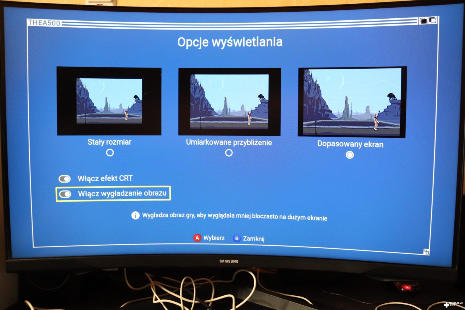 Opisywane urządzenie to świetna propozycja dla miłośników sprzętów retro. Przechodząc do ustawień, możemy zadecydować o kilku niuansach, mających niemałe znaczenie dla ogólnego wrażenia. Możemy więc włączyć na przykład efekt CRT, sprawiający, że nasze nowoczesne ekrany będą przypominały to, co zapewniały popularne “komputery z dupą”. Wpłyniemy również na zachowanie diody LED i ustawimy je tak, aby było zgodne z naszymi preferencjami. Należy też zaznaczyć, że całe menu systemowe występuje w języku polskim. Tak samo zresztą jak opisy zainstalowanych gier – to spora zaleta, która bardzo korzystnie wpływa na odbiór urządzenia. Gry nie są oczywiście spolszczone, a więc trzeba mieć to na uwadze. Niemniej jednak nawet lokalizacja systemu jest miłą niespodzianką. Trzeba też dostrzec wygodę interfejsu. Możemy posortować gry między innymi po nazwie, czy chronologii premier. Widzimy też zrzuty ekranu po zatrzymaniu się na jakiejś produkcji. Zauważymy również obsługiwane kontrolery oraz naszą ocenę w gwiazdkach. Możemy bowiem wystawić własną notę, oznaczając tym samym jak bardzo podoba się nam dany tytuł. Gry działają w rozdzielczości 720p i w 50 Hz lub 60 Hz – zależnie od naszego wyboru.