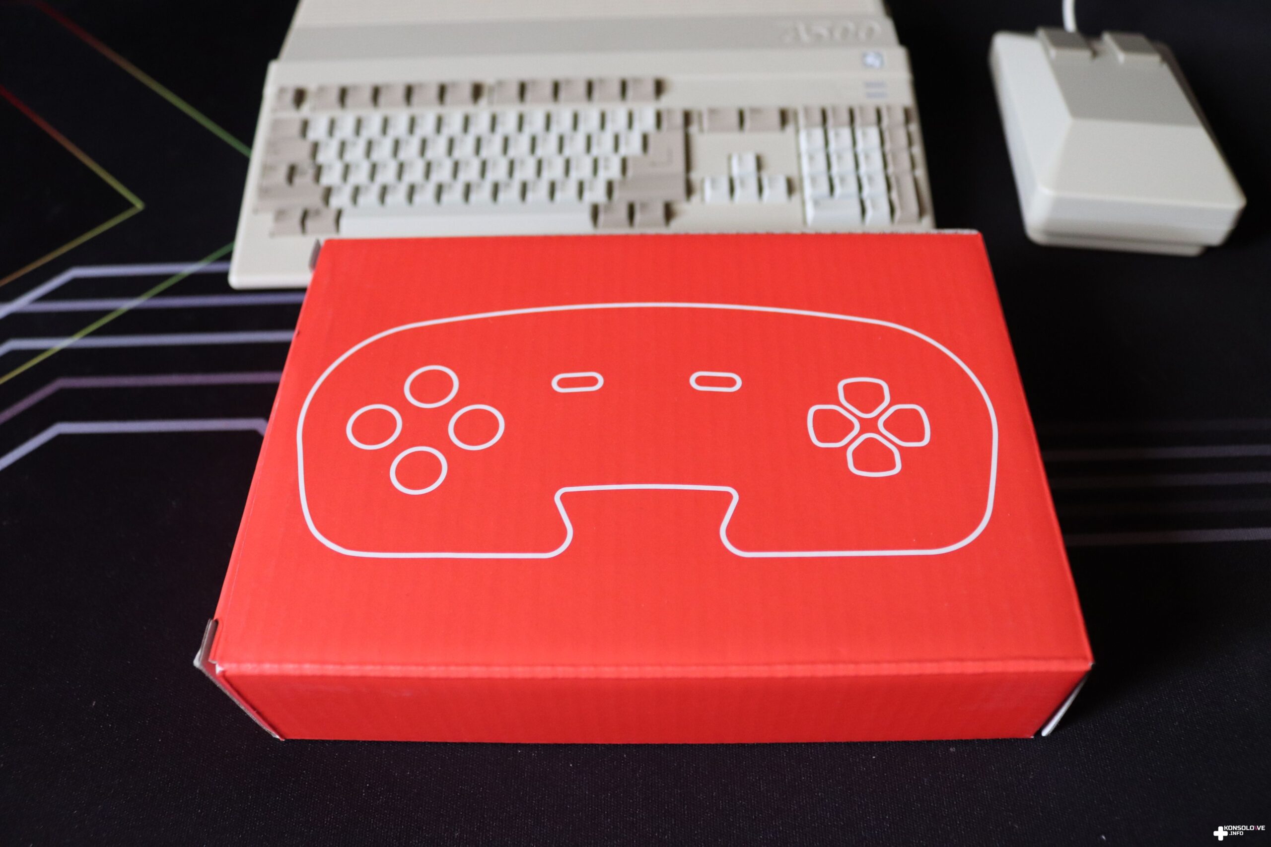 Zawartość opakowania wygląda na pierwszy rzut oka dość standardowo. Mamy bowiem oczywiście samą konsolkę THEA500 Mini. Należy jednocześnie zaznaczyć, że jest ona skrywana pod kawałkiem przezroczystego plastiku, przypominającym klasyczną szybkę. Sprawia to naturalnie bardzo pozytywne wrażenie i można przypomnieć sobie dawne czasy. Pod konsolą (oraz oczywiście prostą instrukcją podłączenia) znajdziemy jeszcze dwa mniejsze prostokątne, czerwone kartony. Są opisane symbolami kontrolerów – kanciastej myszki i pada. W tych opakowaniach są oczywiście te kontrolery, ale i kable, jakie wykorzystamy do podłączania. Warto zauważyć, że przewody mają – tak samo jak wspomniane kontrolery i główna jednostka – charakterystyczne beżowe kolory, co sprawia bardzo przyjemne wrażenie.