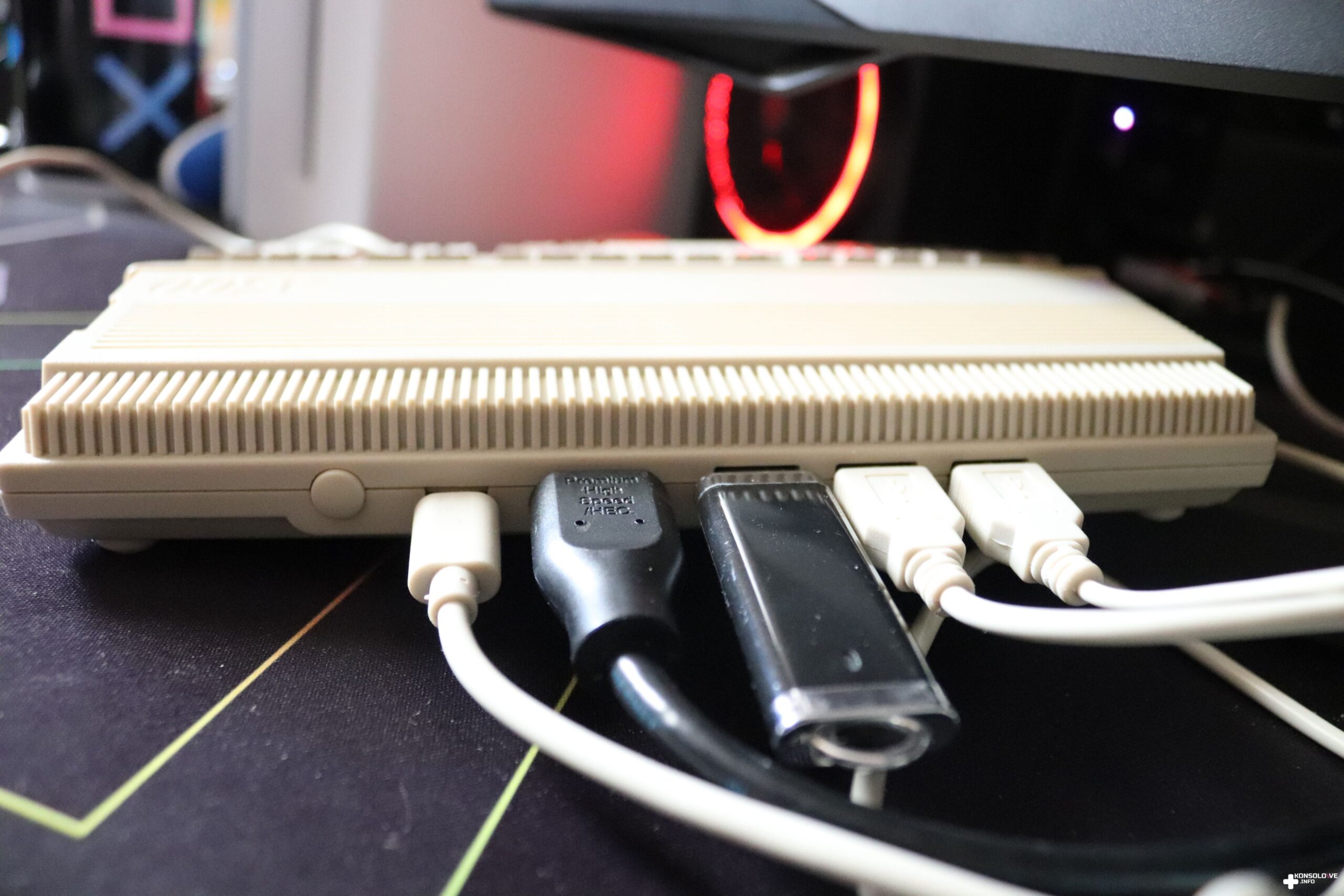 O tym, że nasza konsolka jest zasilana informuje nas oczywiście odpowiednia dioda na górze urządzenia. Następnie, aby ją włączyć, wystarczy po prostu nacisnąć stosowny przycisk. Po około 2 sekundach naszym oczom ukaże się prosty interfejs THEA500 Mini, z którego po prostu wybieramy gry. Należy zaznaczyć, że nie będziemy mogli programować za pomocą testowanego sprzętu. Nie jest on bowiem wyposażony w odpowiednie narzędzia systemowe i nie znajdziemy tu Workbencha. Natomiast sama klawiatura, która momentalnie przykuwa nasz wzrok to jedynie atrapa. Żadnego z przycisków nie da się wcisnąć i stanowią one zaledwie ozdobę. Nie powinno to jednak dziwić. Klawisze są zdecydowanie za małe, aby można było z nich komfortowo korzystać.