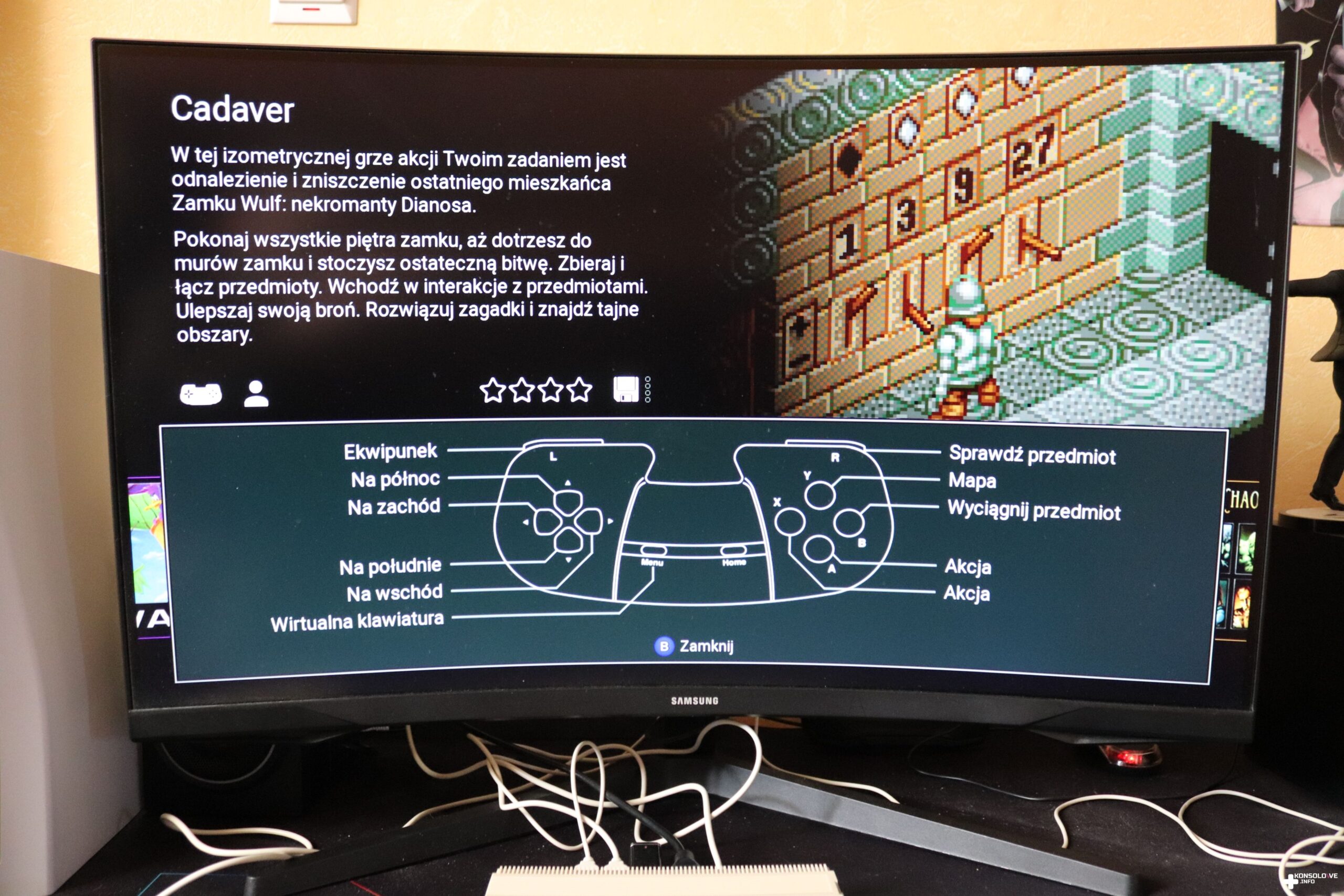 Opisywane urządzenie to świetna propozycja dla miłośników sprzętów retro. Przechodząc do ustawień, możemy zadecydować o kilku niuansach, mających niemałe znaczenie dla ogólnego wrażenia. Możemy więc włączyć na przykład efekt CRT, sprawiający, że nasze nowoczesne ekrany będą przypominały to, co zapewniały popularne “komputery z dupą”. Wpłyniemy również na zachowanie diody LED i ustawimy je tak, aby było zgodne z naszymi preferencjami. Należy też zaznaczyć, że całe menu systemowe występuje w języku polskim. Tak samo zresztą jak opisy zainstalowanych gier – to spora zaleta, która bardzo korzystnie wpływa na odbiór urządzenia. Gry nie są oczywiście spolszczone, a więc trzeba mieć to na uwadze. Niemniej jednak nawet lokalizacja systemu jest miłą niespodzianką. Trzeba też dostrzec wygodę interfejsu. Możemy posortować gry między innymi po nazwie, czy chronologii premier. Widzimy też zrzuty ekranu po zatrzymaniu się na jakiejś produkcji. Zauważymy również obsługiwane kontrolery oraz naszą ocenę w gwiazdkach. Możemy bowiem wystawić własną notę, oznaczając tym samym jak bardzo podoba się nam dany tytuł. Gry działają w rozdzielczości 720p i w 50 Hz lub 60 Hz – zależnie od naszego wyboru.