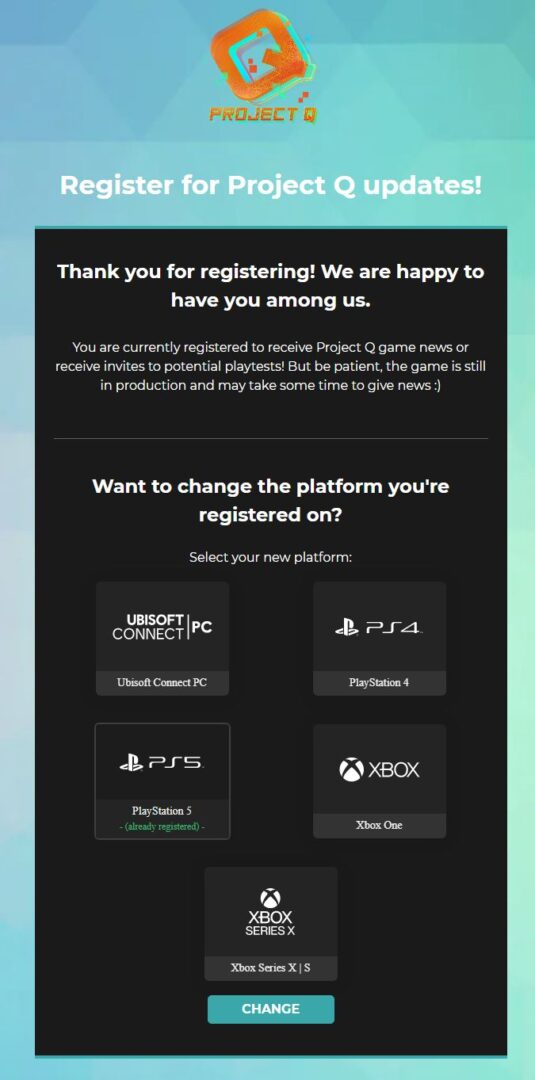 Twórcy określają swoje najnowsze dzieło jako drużynową grę battle arena. Nie należy jednak mylić tego określenia z battle royale. Project Q ma zawierać zróżnicowane tryby PvP oraz stawiać na pierwszym miejscu dobrą zabawę. Można się więc spodziewać szybkiego odradzania naszej postaci, aczkolwiek to jedynie mój domysł. Pewne jest natomiast to, że Ubisoft nie zamierza dodawać NFT do swojej gry, o czym otwarcie napisano na Twitterze. Nie wiemy jeszcze, kiedy Project Q będzie miało premierę. Możecie jednak już się rejestrować do pierwszych sesji sieciowych. Aby tego dokonać, należy udać się na tę stronę i zalogować się na swoim koncie, po czym wybrać platformę, na którą gra nas najbardziej interesuje.