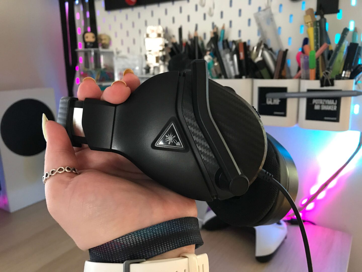 Trzeba jednak przyznać, że są to słuchawki tańsze. Korzystając na co dzień z Logitech G733 i HyperX CloudX Stinger Core jestem trochę rozpieszczona. I o ile nie jest to najlepszy dźwięk, a ładowanie ich by korzystać z mikrofonu jest niedorzeczne, po doświadczeniach z Turtle Beachem wiem, że są to jednak słuchawki nie do zdarcia. Przy dzieciach-graczach słuchawki te poddawane są największej próbie, a po roku dalej nic im nie jest (model Recon 70). Wiele innych headsetów po takim czasie miało już problemy z mikrofonem czy jedną niedomagajacą słuchawką.