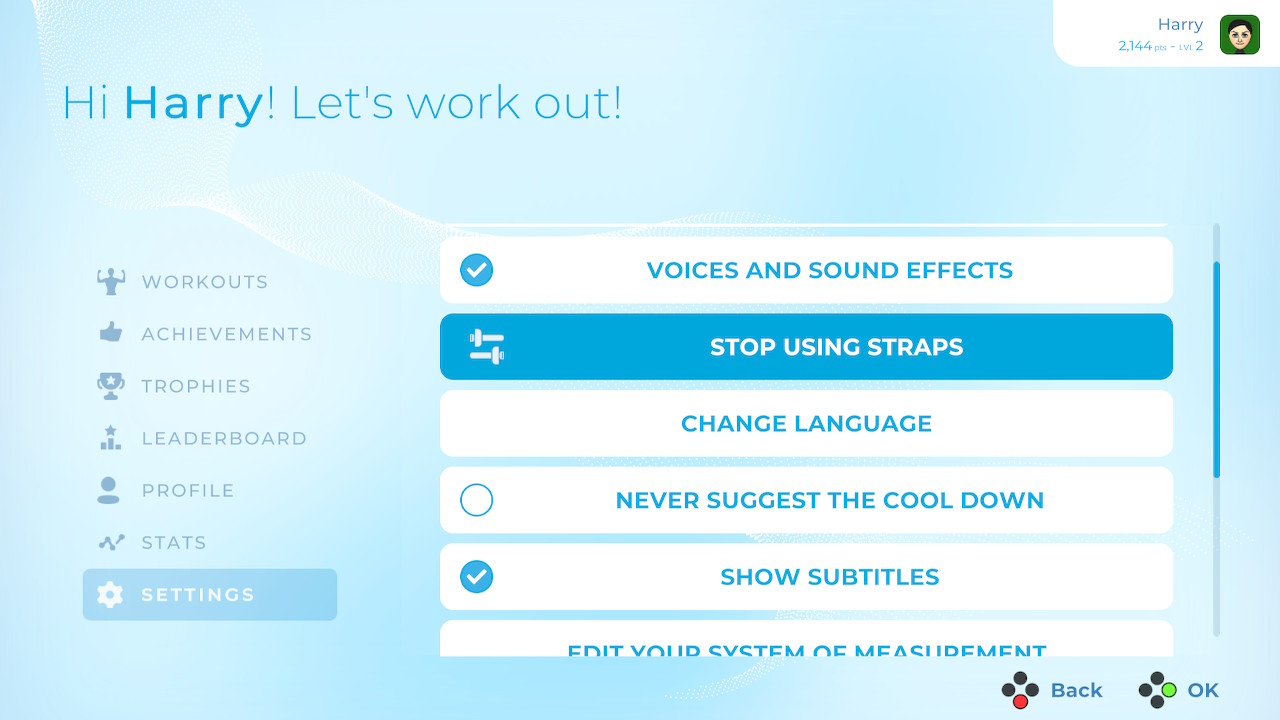 Zanim przejdziemy do treningu, musimy skonfigurować swój profil w grze. Możemy wybrać jedno z istniejących kont na konsoli. Następnie wybierzemy wiek, wagę oraz stopień zaawansowania jeśli chodzi o ćwiczenia fizyczne. Konfiguracja jest szybka i zawsze możemy do niej wrócić.