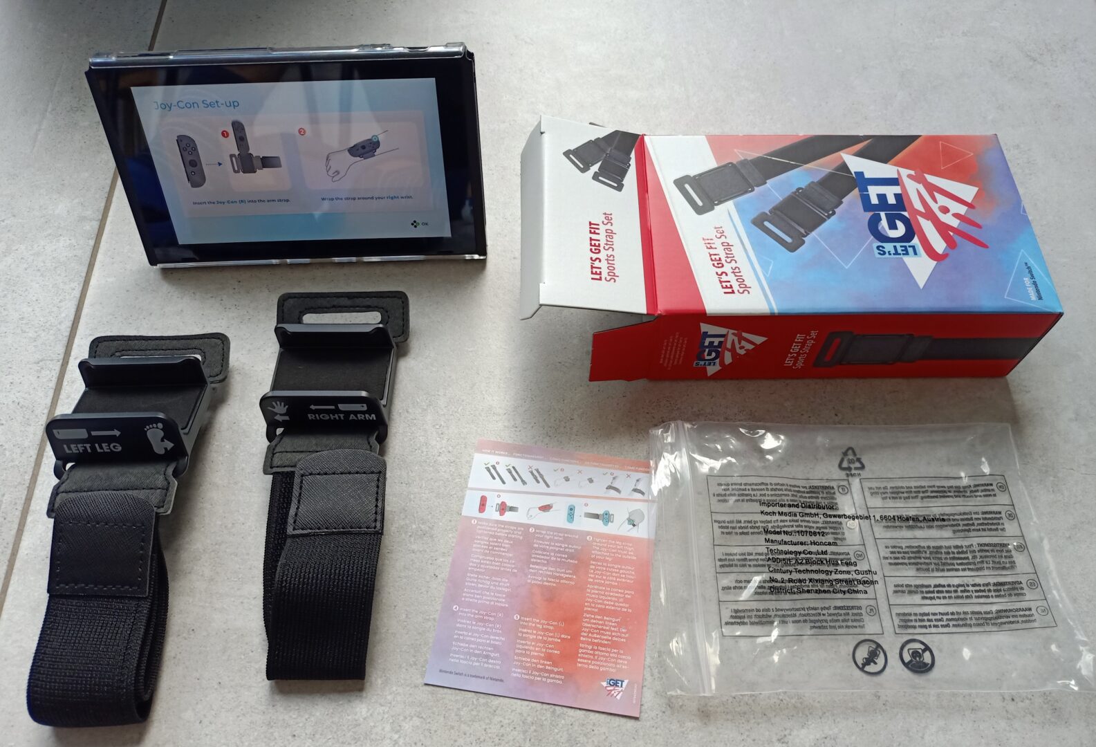 Zacznę od akcesoriów, ponieważ widziałem takie po raz pierwszy. Jak się okazało, nie są one niezbędne do gry, ale jeszcze do tego tematu wrócę. Do tej pory miałem do czynienia z akcesoriami z gry Ring Fit Adventure. Opaska na nogę była całkowicie materiałowa, jednak show kradł oczywiście słynny ring, do którego elegancko mocowało się jeden z Joy-Conów (z satysfakcjonującym kliknięciem). Opaski Let’s Get Fit nie mają takich samych zapięć, właściwie wciska się Joy-Cony do oporu, aż nie będzie ich można wcisnąć dalej. Mają więc prostą budowę, ale trzeba też zaznaczyć, że grę wraz z opaskami można znaleźć w bardzo atrakcyjnej cenie, co również za chwilę poruszę.
