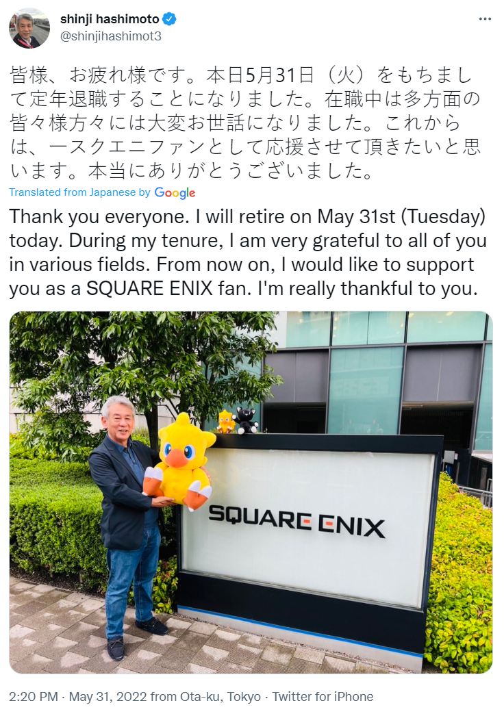 Shinji Hashimoto po 27 latach w Square Enix odchodzi na emeryturę