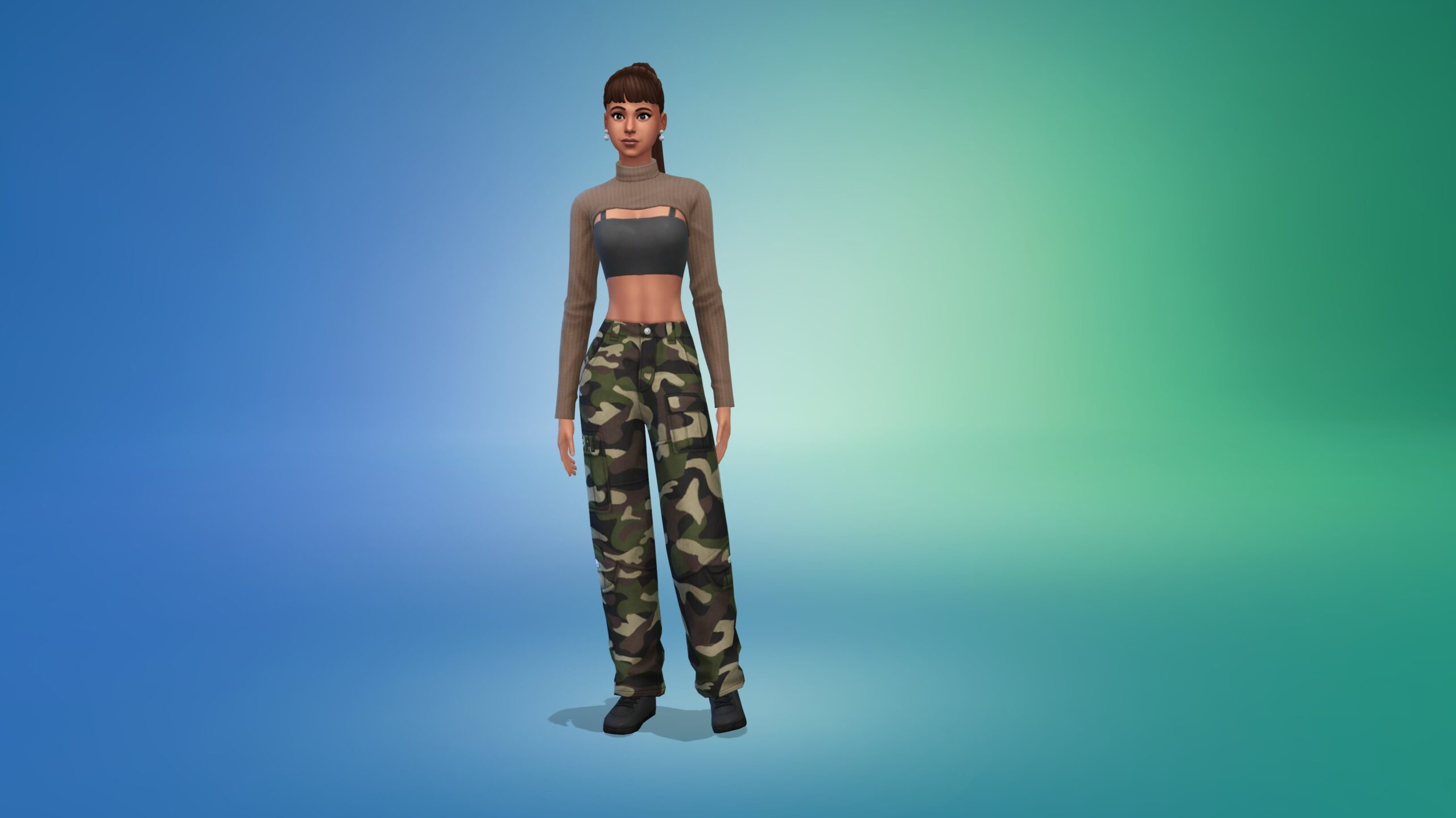 Przyznam szczerze, że ten top z ramionkami naprawdę mi się podoba, a spodnie we wzorek camo to totalnie mój klimat. Ładny sweter z dekoltem w V i zgrabne krótkie spodenki – miodzio.