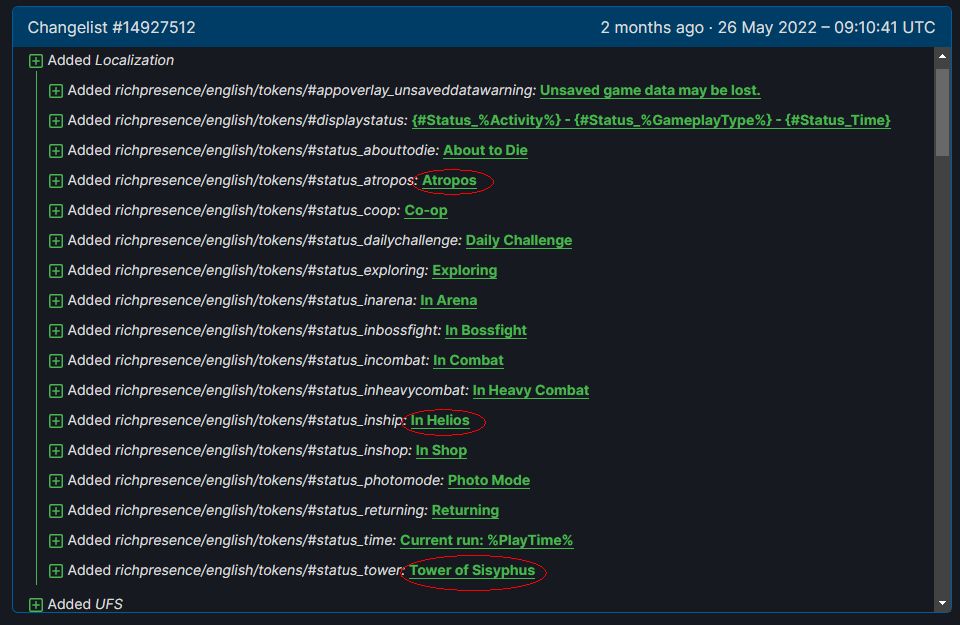 Z powyższej rozpiski wynika, że gra nie będzie obsługiwała ekranu dotykowego. Szkoda – do poruszania się po leksykonie, czy przeglądania mapy mógłby on być całkiem niezły. Można się oczywiście zastanawiać, skąd wiadomo, że Oregon to akurat Returnal. Wystarczy jednak sprawdzić historię zmian w plikach, dostępną na SteamDB, aby nie było wątpliwości. Tower of Sisyphus, Helios, Atropos – to elementy świata, które z pewnością rozpoznaje każdy, kto grał w Returnal.