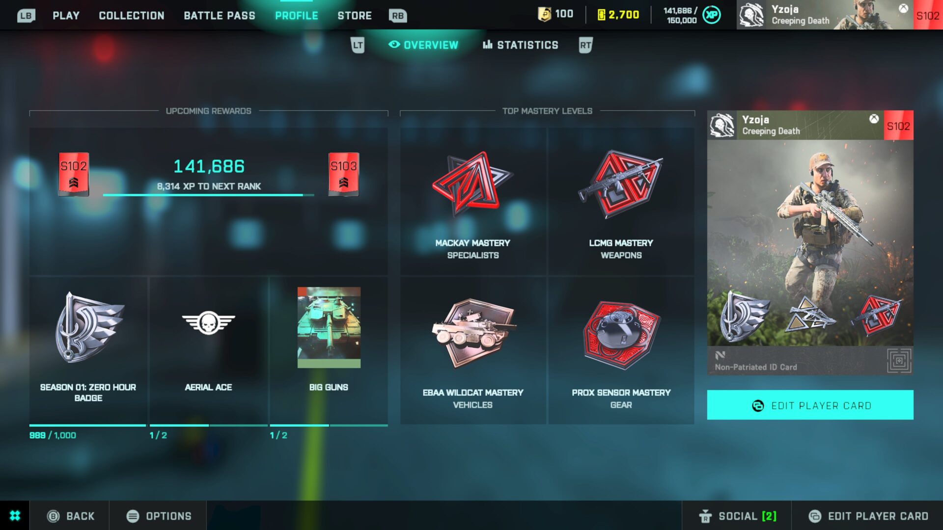 W menu znajdziemy teraz nową zakładkę, profil, gdzie znajdziemy szybki podgląd najbliższej rangi (i ewentualnych odblokowań), nowych tagów do profilu, a także najwyższe poziomy mistrzowskie, podzielone na kategorie.
