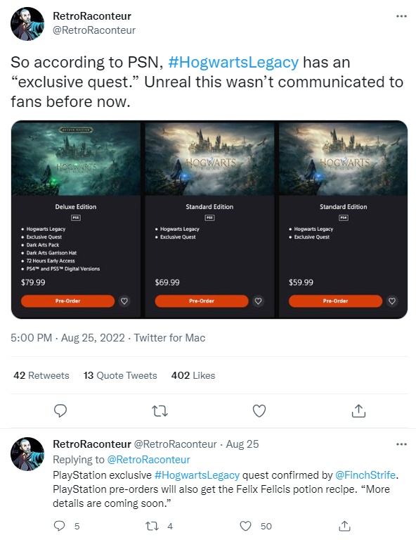 Hogwarts Legacy z dodatkową misją tylko na PlayStation
