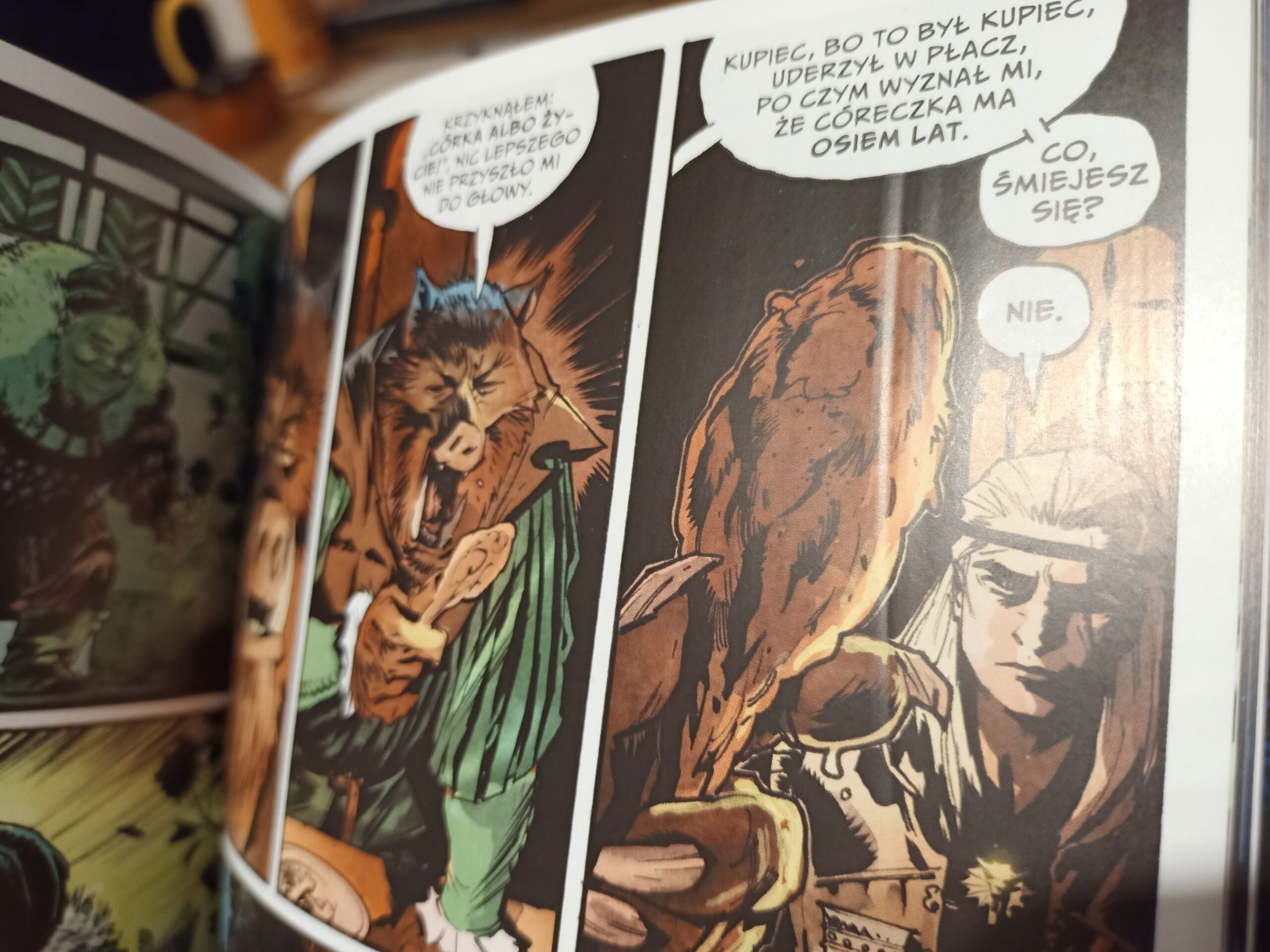 Można powiedzieć, że klasyczne opowiadania Andrzeja Sapkowskiego bronią się same. Z drugiej jednak strony, to wysoko postawiona poprzeczka dla scenarzysty komiksowego, aby opowiedzieć tę sprawdzoną historię w równie interesujący sposób. Muszę przyznać, że Jacek Rembiś sprostał temu zadaniu. Warto w tym miejscu wspomnieć, że autor pracował też przy wielokrotnie nagradzanym Frostpunku. Ma również doświadczenie z pisaniem scenariuszy do animacji: Przytul mnie i Toru superlis. Ziarno prawdy to jego pierwszy komiks. Jak możemy dowiedzieć się ze skrzydełek tego wydania, pracuje już nad adaptacją kolejnego bardzo udanego opowiadania Sapkowskiego, czyli Ostatniego życzenia. Po lekturze recenzowanego tomu muszę przyznać, że to dobra informacja.