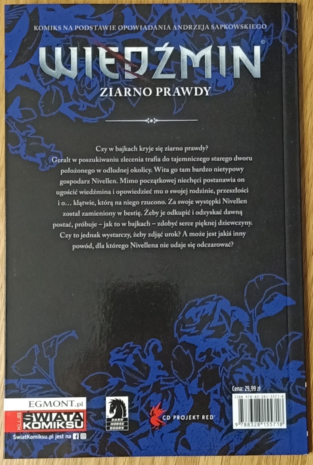 Historie dziejące się w uniwersum Wiedźmina, które do tej pory ukazywały się nakładem wydawnictwa Egmont, były oparte o oryginalne scenariusze. Sprawdzało się to kapitalnie. Pod tymi linkami znajdziecie recenzje ostatnich zeszytów z tej serii, czyli Zatartych Wspomnień i Wiedźmiego Lamentu. Już teraz zapowiedziano wydanie nakładem wspomnianego wydawnictwa mangowych zeszytów Wiedźmin: Ronin, które zaczną się ukazywać już od września. Kolejną serią staną się adaptacje klasycznych opowiadań Andrzeja Sapkowskiego. Na pierwszy ogień poszło recenzowane opowiadanie Ziarno Prawdy. Czy nowy komiks dorówna oryginalnym zeszytom, które czytałem wcześniej? Przekonajmy się!