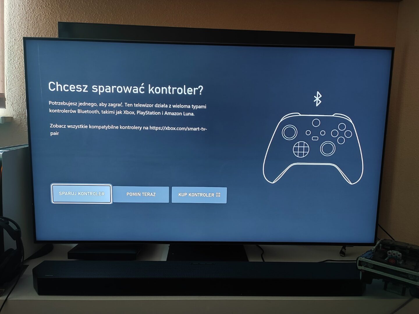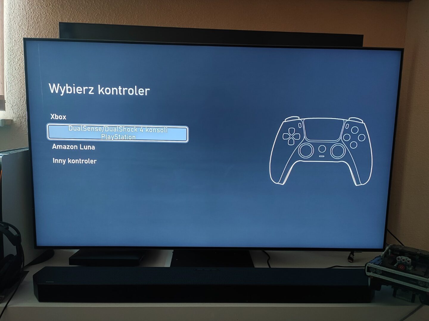 Mając już konto oraz abonament, potrzebujemy jeszcze kontrolera. Firma Microsoft rekomenduje, aby był to oczywiście oficjalny kontroler Xboxa lub… kontrolery od konsol Sony PlayStation 4, czy PS5. Oczywiście najlepszy będzie kontroler Xbox, gdyż wszystkie przyciski wyświetlane w grach, czy aplikacji odpowiadają układowi tego pada. Jednak ja nie mogłem sobie odmówić tej przyjemności, aby w gry z Xbox w końcu zagrać na kontrolerze DualSense od PS5. Parowanie kontrolera w aplikacji Xbox z telewizorem jest niezwykle proste.