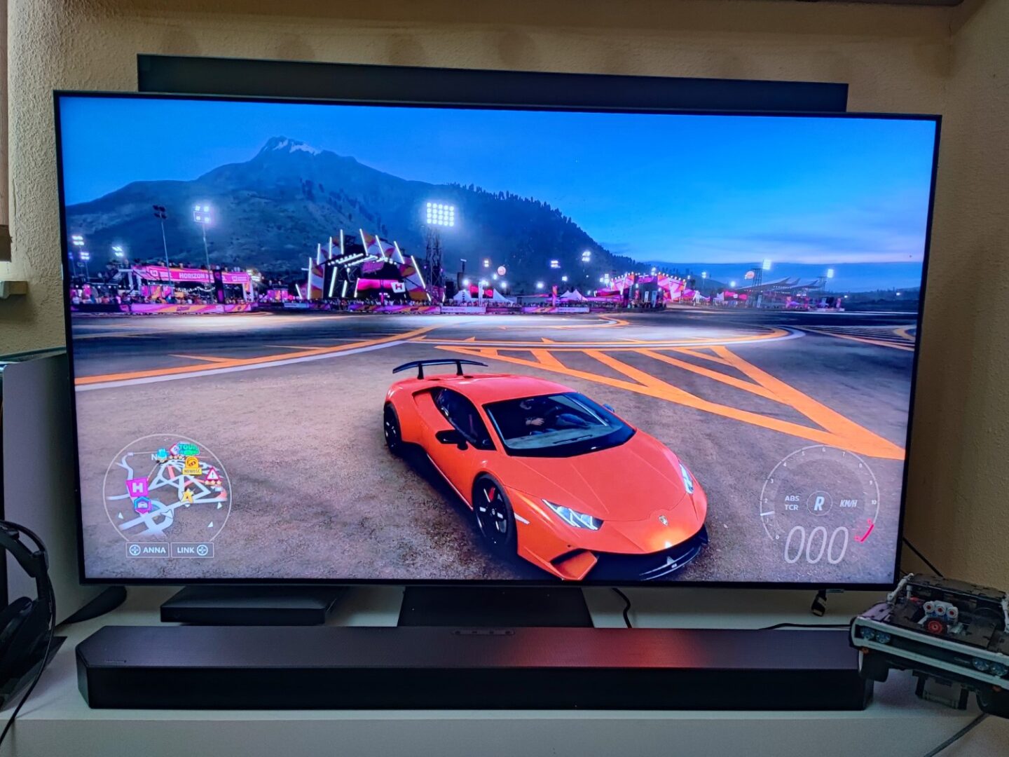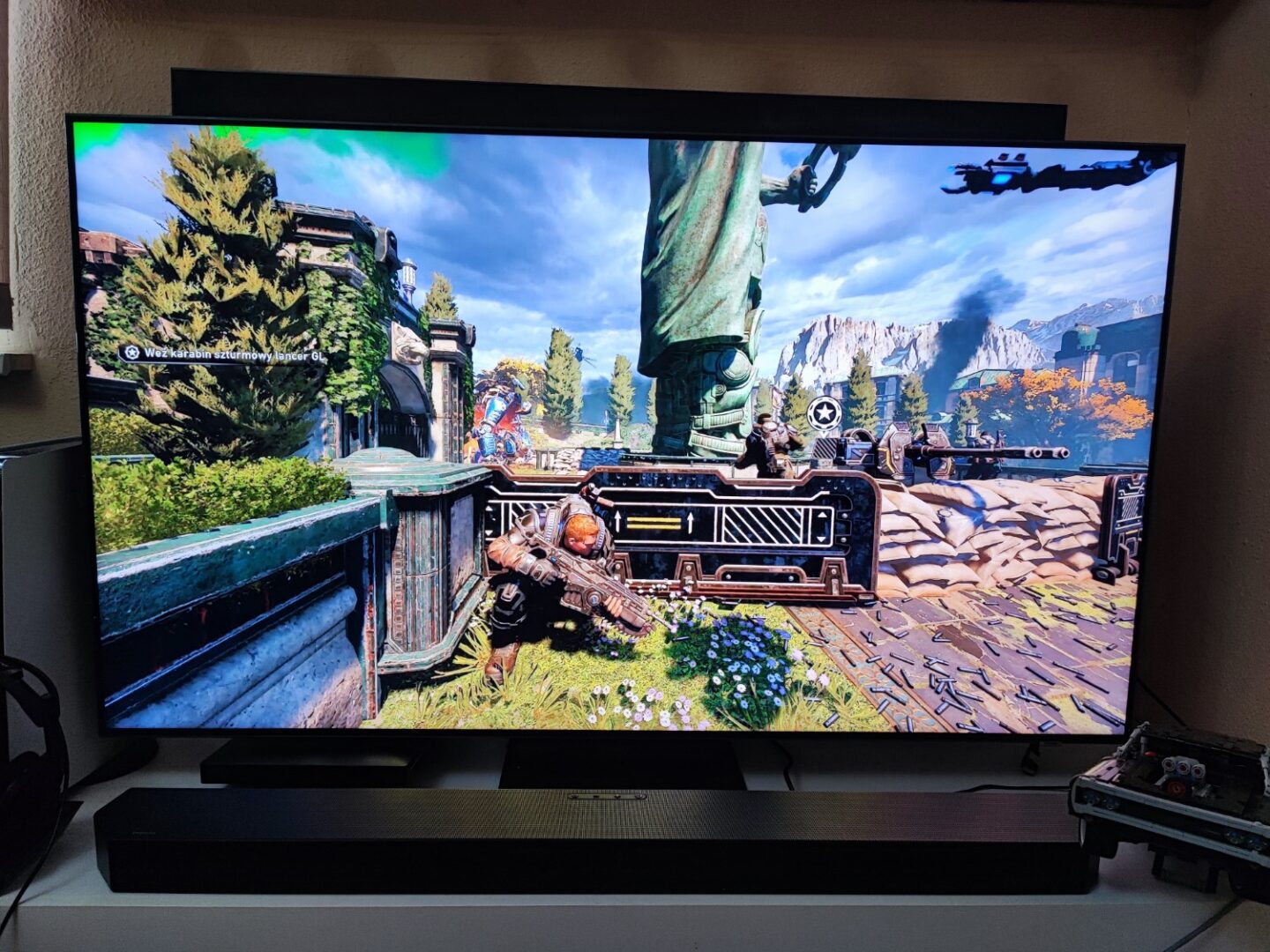 Mimo braku bezprzewodowego Dolby Atmos bezsprzecznie dużą zaletą soundbara jest jego automatyczna synchronizacja się z telewizorem. Tryb Gry Pro włącza się sam od razu po uruchomieniu konsoli. Dzięki temu nie tracimy czasu na konfigurację. Jak już wspomniałem wcześniej, nawet uruchamiając gry w chmurze Xboxa telewizor Samsung Neo QLED QN91B sam przestawia się w Tryb Gra. Jak to jest z dźwiękiem w streamingu? Xbox Cloud Gaming niestety nie wspiera efektów Dolby Atmos, ani nawet dźwięku przestrzennego 5.1. Na pewno jest to największą wadą tej usługi. Konkurencyjna Stadia od Google obsługuje dźwięk 5.1, ale ma też znacznie większe wymagania co do łącza internetowego. W normalnych warunkach, gdy uruchamiamy z konsoli Xbox Series takie gry jak Forza Horizon 5, czy Gears of War 5, to na soundbarze HW-Q600B od razu można zobaczyć napis Dolby Atmos. W chmurze niestety nic takiego nie ma miejsca. Ale za to w momencie uruchomienia gry soundbar sam przestawia się na tryb Gra Pro. W związku z tym i tak będziemy mogli się cieszyć kapitalnym i wzmocnionym dźwiękiem.
