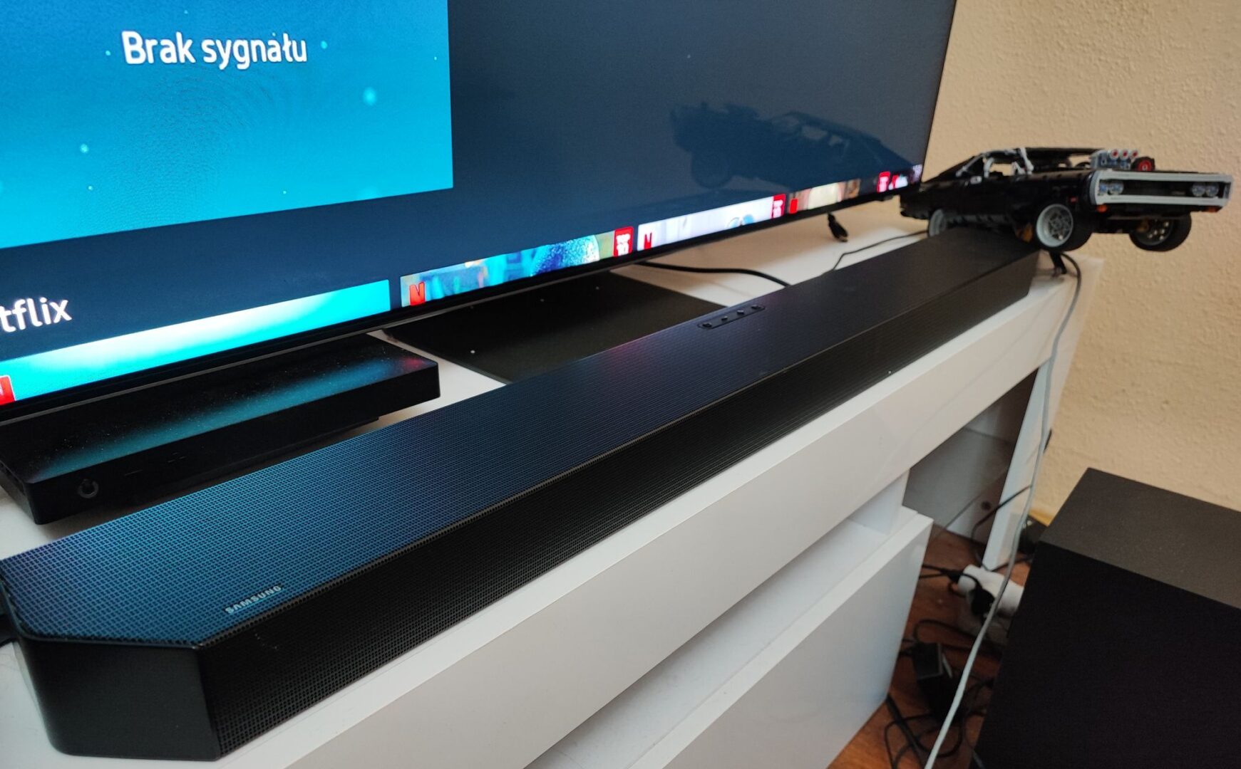 Z jednej strony jest to kapitalne rozwiązanie dla osób, które nie lubią plątaniny kabli w okolicy telewizora. Po prostu wyciągasz urządzenie z kartonu, kładziesz je pod telewizorem, synchronizujesz za pomocą sieci WiFi i gotowe. Nie musisz już szukać w telewizorze gniazd HDMI eARC, czy podłączać konsoli kablem HDMI do soundbara. Teraz cała komunikacja odbywa się po prostu bezprzewodowo. Niestety, testowany przez nas model HW-Q600B nie wspiera bezprzewodowej technologi Dolby Atmos. Uznałem jednakże, że warto o tym wspomnieć, ponieważ jest to pewien powiew świeżości w produkcji soundbarów. Bezprzewodowy Dolby Atmos możecie znaleźć w modelach Q990B, Q930B, Q800B, Q700B.
