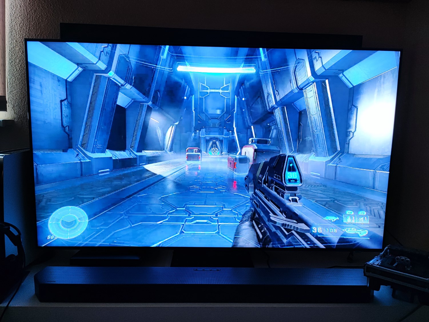 Mimo braku bezprzewodowego Dolby Atmos bezsprzecznie dużą zaletą soundbara jest jego automatyczna synchronizacja się z telewizorem. Tryb Gry Pro włącza się sam od razu po uruchomieniu konsoli. Dzięki temu nie tracimy czasu na konfigurację. Jak już wspomniałem wcześniej, nawet uruchamiając gry w chmurze Xboxa telewizor Samsung Neo QLED QN91B sam przestawia się w Tryb Gra. Jak to jest z dźwiękiem w streamingu? Xbox Cloud Gaming niestety nie wspiera efektów Dolby Atmos, ani nawet dźwięku przestrzennego 5.1. Na pewno jest to największą wadą tej usługi. Konkurencyjna Stadia od Google obsługuje dźwięk 5.1, ale ma też znacznie większe wymagania co do łącza internetowego. W normalnych warunkach, gdy uruchamiamy z konsoli Xbox Series takie gry jak Forza Horizon 5, czy Gears of War 5, to na soundbarze HW-Q600B od razu można zobaczyć napis Dolby Atmos. W chmurze niestety nic takiego nie ma miejsca. Ale za to w momencie uruchomienia gry soundbar sam przestawia się na tryb Gra Pro. W związku z tym i tak będziemy mogli się cieszyć kapitalnym i wzmocnionym dźwiękiem.