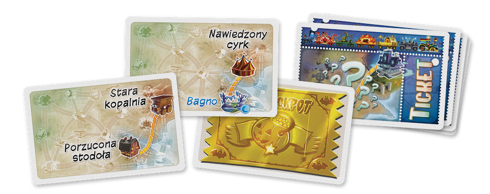 Wsiąść do Pociągu Widmo to łatwa do nauczenia i szybka odsłona popularnej serii gier rodzinnych, doskonała, żeby wprowadzić do niej młodszych graczy. Podczas zabawy dzieci i rodzice będą zbierali specjalne, kolorowe karty platform, które pozwolą im zajmować kolejne odcinki na mapie Koszmarkowa.