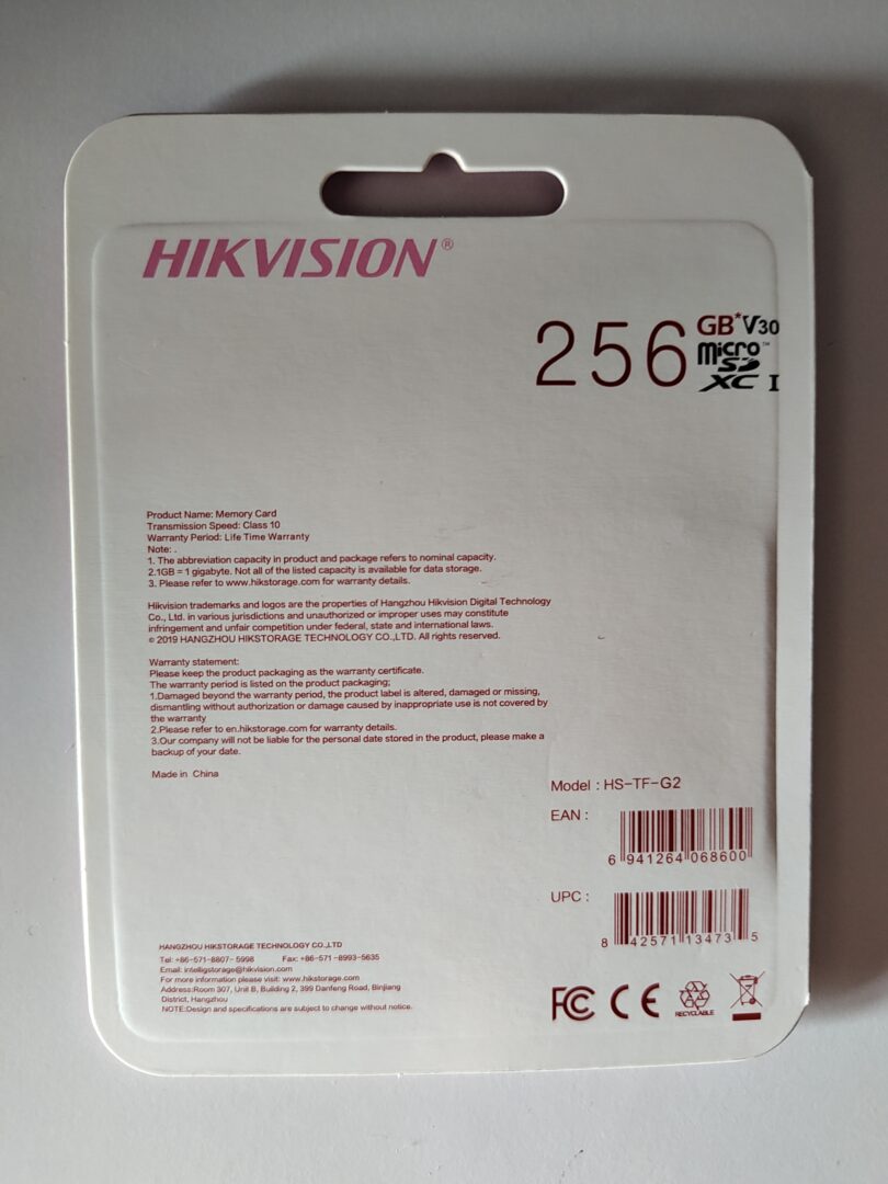 Specyfikacja karty Hikvision 256 GB TF-G2