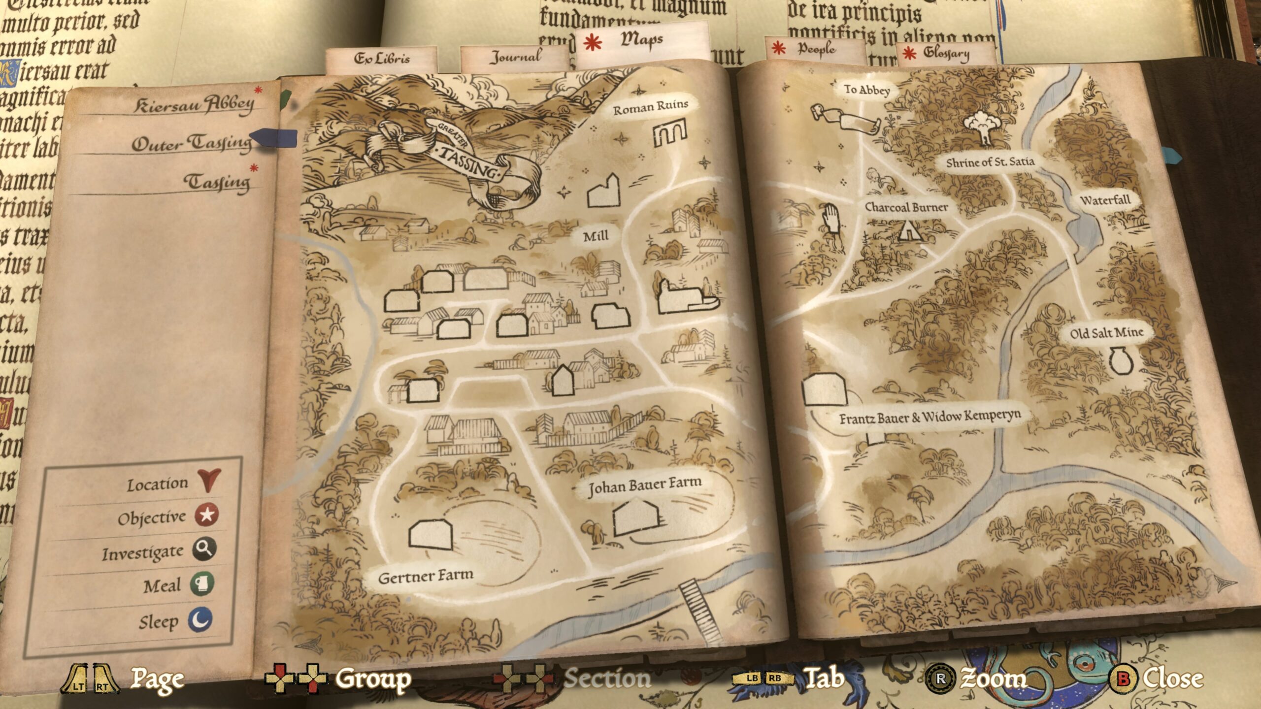 Pod przyciskami X i Y znajdziemy na szybko dostęp do mapy oraz dziennika, gdzie oprócz aktualnych zadań znajdziemy słownik oraz charakterystykę poznanych postaci.