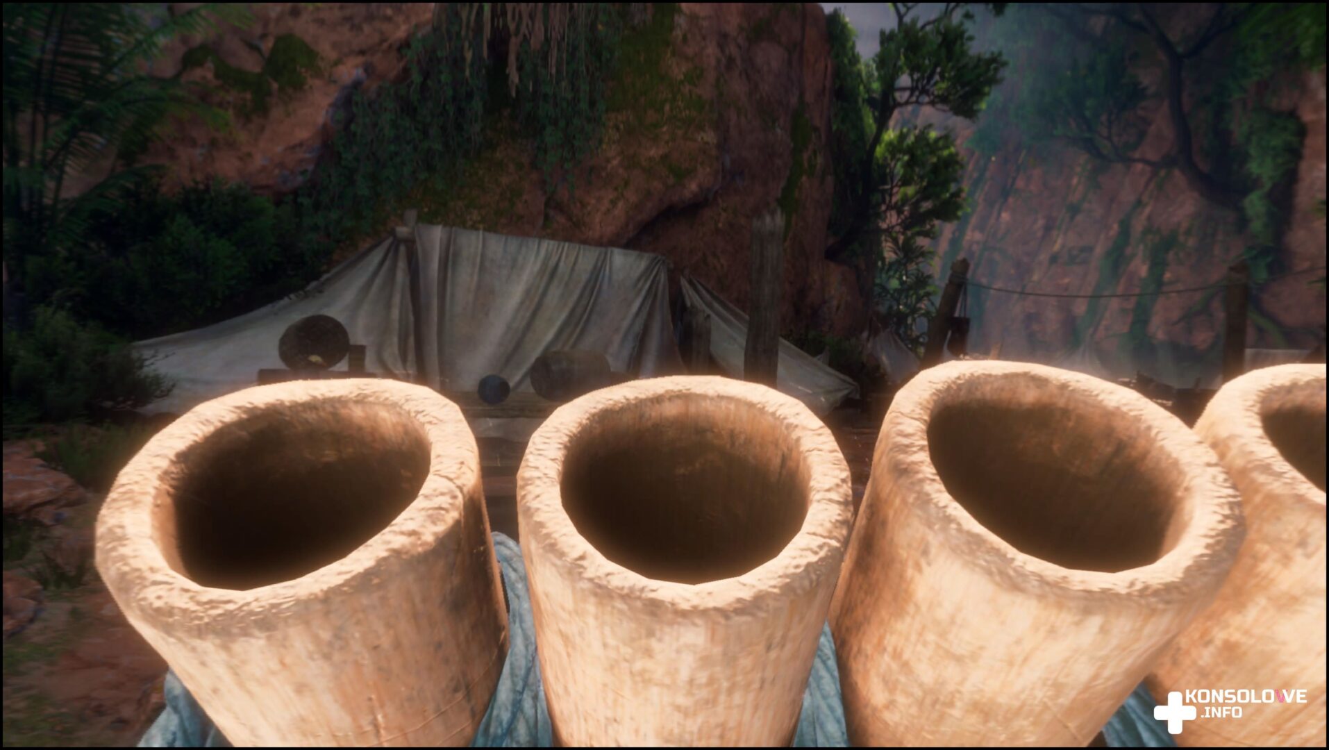 Już przy pierwszych goglach PlayStation VR kontrolery ruchowe (PlayStation Move) nierzadko miały kolosalny wpływ na nasze doznania z rozgrywki. Zapomnijcie o tamtych urządzeniach. Kontrolery Sense zdecydowanie są po prostu stworzone stricte do grania w produkcje korzystające z wirtualnej rzeczywistości. Więcej na temat samych Sense’ów pisałem oczywiście w – wcześniej linkowanym – teście, a więc teraz skupmy się na ich zastosowaniu w Call of the Mountan. Nie jestem w stanie wyobrazić sobie lepszego sposobu na sterowanie niż właśnie te kontrolery. Widzimy przed sobą nasze dłonie, które są perfekcyjnie śledzone. Za ich pomocą, sięgając w naturalny sposób za ramię weźmiemy łuk. Następnie, drugą ręką sięgamy do naszego wyimaginowanego kołczanu, po czym nakładamy strzałę na cięciwę i ją wypuszczamy.