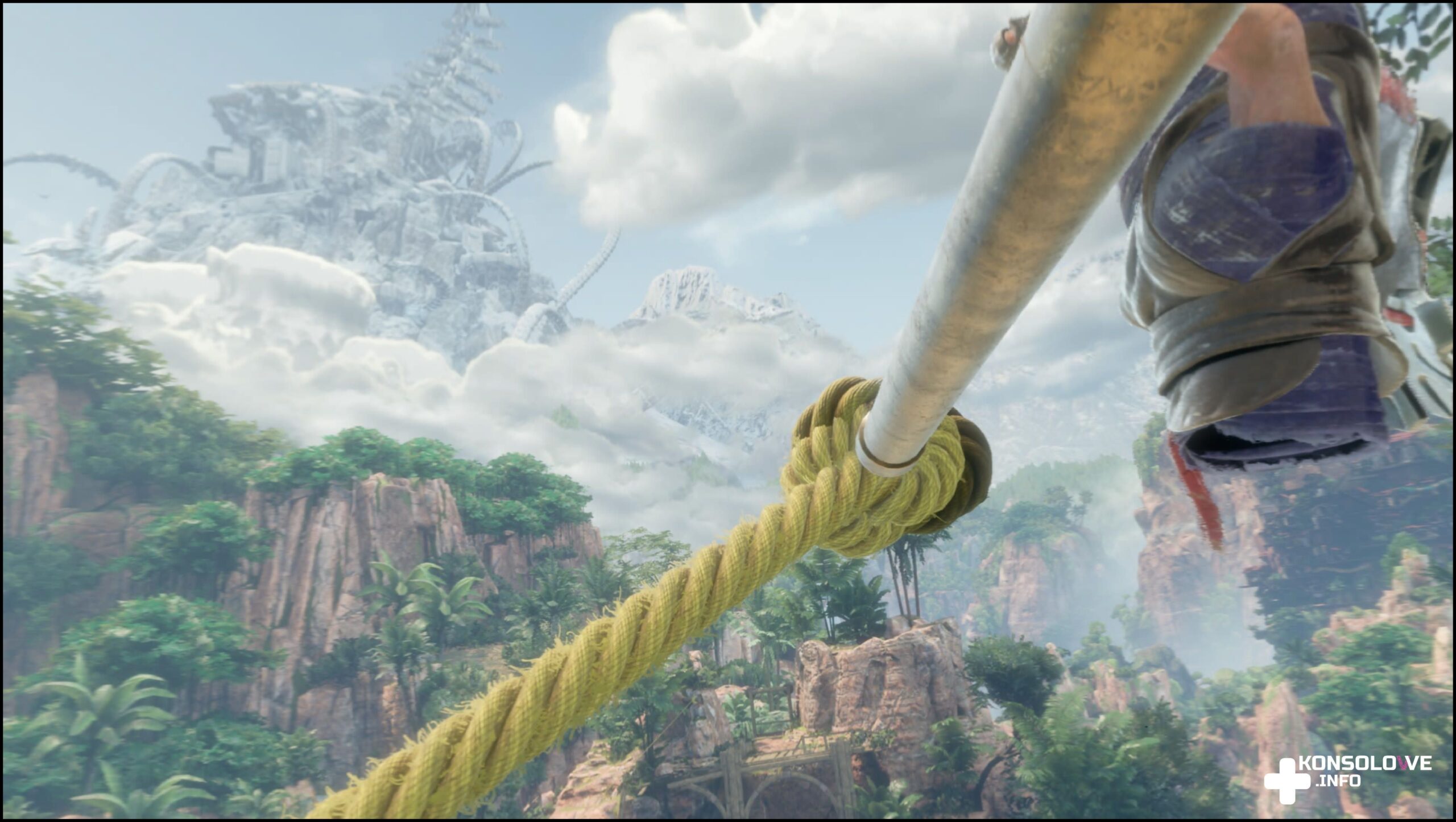 Jeśli graliście wcześniej wyłącznie na pierwszym PlayStation VR – jak ja – to gwarantuję Wam, że często będziecie zbierali szczękę z podłogi. Ta gra jest po prostu piękna i nie widać po niej żadnych kompromisów, na które na pewno musieli iść twórcy tego tytułu. Można nawet odnieść wrażenie, że Call of the Mountain mogłoby bez problemu ukazać się jako osobny tytuł na PlayStation 4. I pewnie by mogło, ale niewątpliwie nie odniosłoby takiego sukcesu, jaki przewiduję wersji na VR. Następny akapit częściowo tłumaczy dlaczego tak uważam.