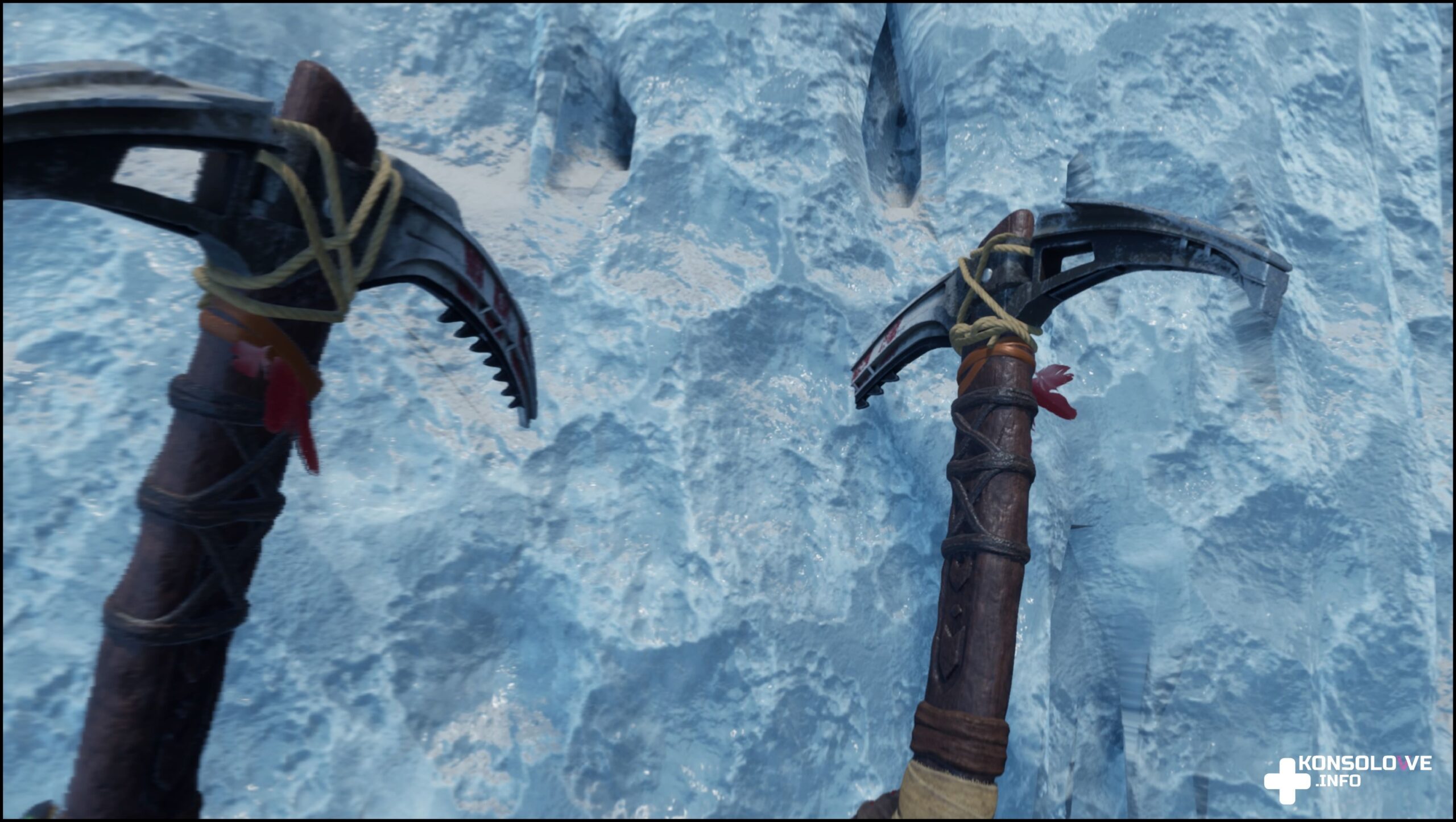 Możemy też ścierać szron z twarzy, przecierając przed goglami dłońmi. Nie brakuje też wspinaczki i szukania miejsca do chwycenia, wbijania czekanów, czy nawet trzymania się jakiejś dziury palcem. Brzmi to może dość dziwacznie, aczkolwiek zaręczam, że w toku rozgrywki nie będziecie na to zwracać uwagi. Będziecie za to zachwyceni sposobem oddania wspinaczki i nie tylko – więcej dowiecie się oczywiście z kolejnej części niniejszej recenzji.