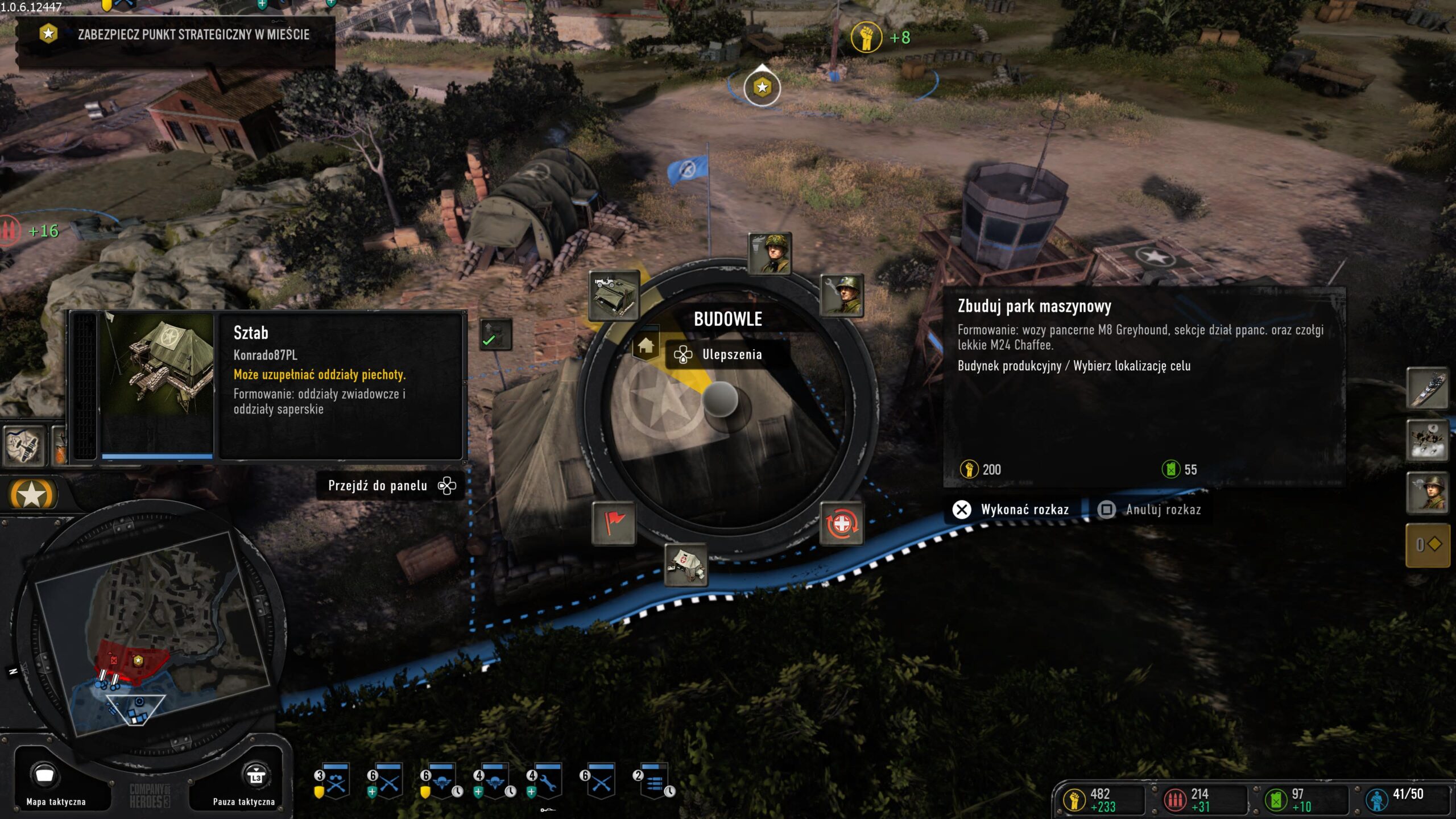 Na koniec trzeba omówić kwestie techniczne, ale tu również nie ma się do czego przyczepić. Gra na PS5 śmiga w rozdzielczości 4K przy 30 FPS-ach. W trybie wydajności mamy 60 klatek przy niższej rozdzielczości. Nawet duże starcia czołgów i naloty bombowe nie były w stanie sprawić, aby pojawiły się jakiekolwiek problemy z wydajnością. Company of Heroes 3 jest też fantastycznie udźwiękowione, osoby za ścianą waszego pokoju mogą pomyśleć, że oglądacie film wojenny. Grafika to natomiast kwestia umowna. Ja nie oczekuję, że strategia będzie piękna niczym nowe Call of Duty. Takie gry muszą być super płynne, aby nic nie przeszkodziło nam w rozgrywce. A recenzowany tytuł taki właśnie jest – super płynny i przyzwoicie się prezentuje. Do tego gra ma świetną fizykę destrukcji otoczenia. Przykładowo każdy strzał z czołgu powoduje kolejne zniszczenia budynku, zanim się całkowicie rozsypie.