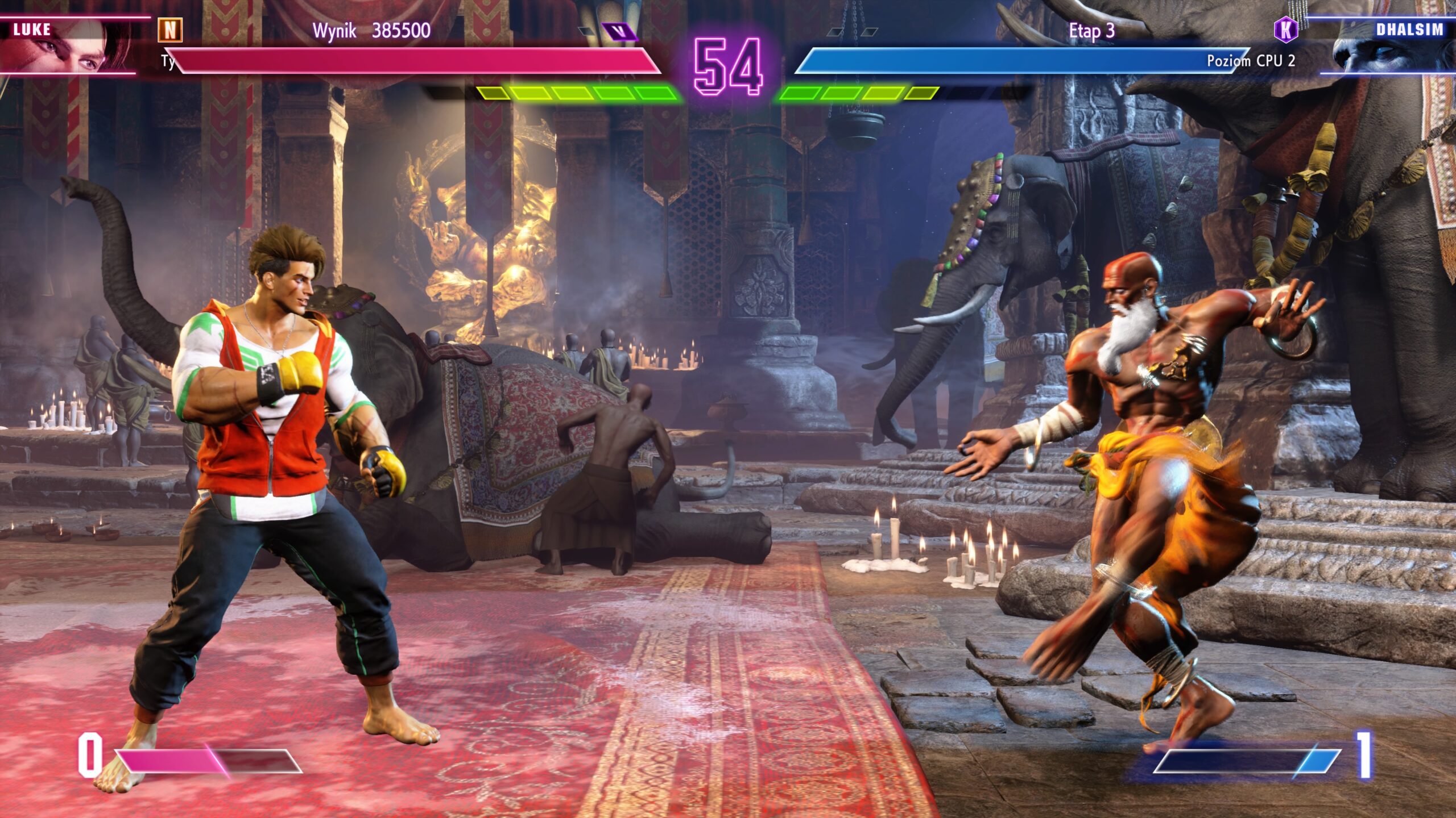 Cieszę się, że Capcom wprowadził alternatywne opcje sterowania. Gra od razu staje się bardziej przyziemna pod względem trudności dla mniej doświadczonych uczestników rozgrywki. W tym dla niziołka takiego jak ja. Do dyspozycji otrzymujemy klasyczny schemat z koniecznością ogarnięcia wszystkich skomplikowanych kombinacji, by wykonać super ataki. Czapki z głów dla tych, którzy robią to bezbłędnie i są świetnymi graczami. Obok klasycznego sterowania pojawił się także układ dynamiczny oraz mój ulubiony w tej części gry – współczesny. Dynamiczny ma za zadanie wspierać graczy automatycznym wyprowadzeniem ciosów. Natomiast ten współczesny sprowadza wszystkie specjalne ataki do bardzo prostych kombinacji. Wierzcie lub nie, ale z takim sterowaniem można się przekonać do tego tytułu. Wiem, co mówię.