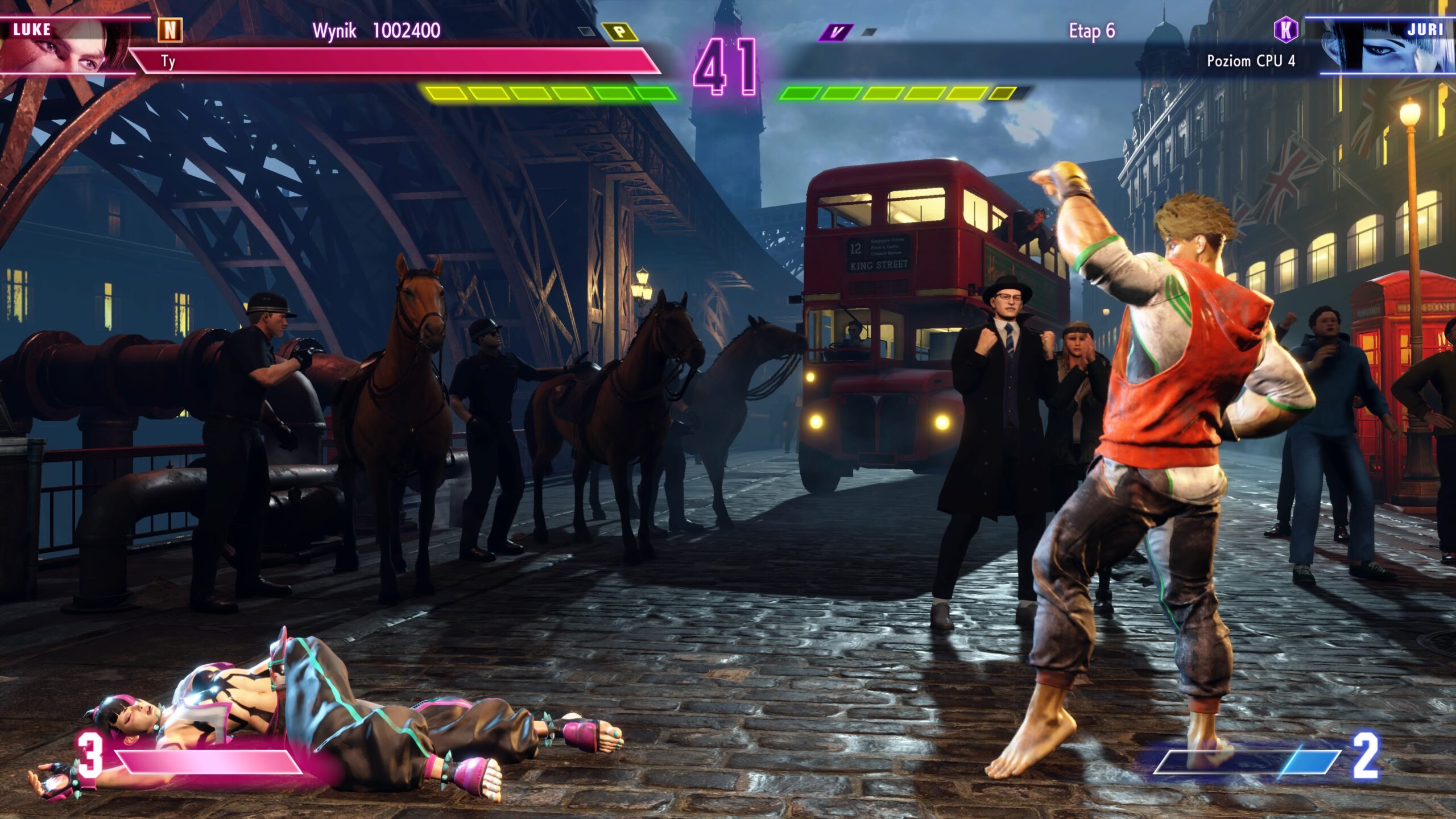 Oficjalna odpowiedź pojawi się w chwili, w której więcej graczy odpali Street Fighter 6 i postanowi się wypowiedzieć. W mojej opinii sam tryb fabularny opiera się głównie na rozegraniu kilkunastu walk z przeciwnikami. Znacznie więcej fabularnie dzieje się, kiedy przenosimy się do nowości, jaką jest otwarty świat World Tour. Tam wielozadaniowość, misje poboczne i rozwijanie swojej postaci mają więcej rozbudowanych historii, niż w przypadku podstawowej fabuły. Ten element twórcy mogliby jednak trochę poprawić. Kontrastując – fabuła w Mortal Kombat to kilkanaście scen połączonych z walkami. Wtedy myślę, że byłabym całkowicie usatysfakcjonowana. Przyznać jednak muszę niezwykłą pomysłowość w trakcie walk fabularnych, jeżeli chodzi o… nietypowych przeciwników.