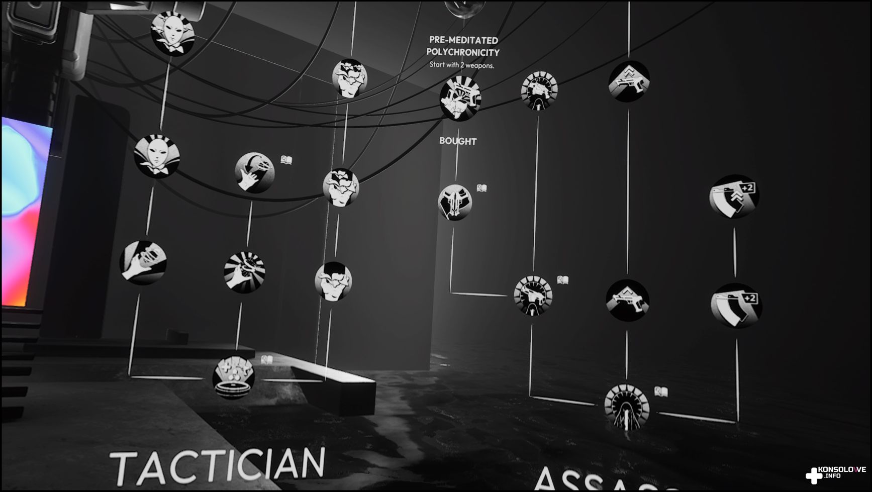Jako że, jak wspomniałem, Synapse jest grą roguelite, to zdarzy się oczywiście, że zginiemy. Ne jest to w żadnym wypadku czymś złym. Mało tego – często okaże się, że śmierć jest bardzo przydatna. Już tłumaczę, co mam na myśli. Po zgonie przenosimy się do punktu startowego, jeszcze przed wejściem na teren poziomu. To tutaj możemy zdać wykonane wyzwania i otrzymać za nie punkty umiejętności. Wyzwania te mogą polegać między innymi na zabiciu określonej liczby przeciwników, wychylając się zza osłony, zmiażdżeniu nieprzyjaciół, czy zebraniu konkretnej liczby premii. Co istotne, wszystkie wyzwania są dla nas od razu widoczne na dość rozległym drzewku. Nadal trzeba je oczywiście odblokowywać sekwencyjnie, niemniej jednak dobrze jest móc zobaczyć, na czym jeszcze będziemy musieli się skupić.