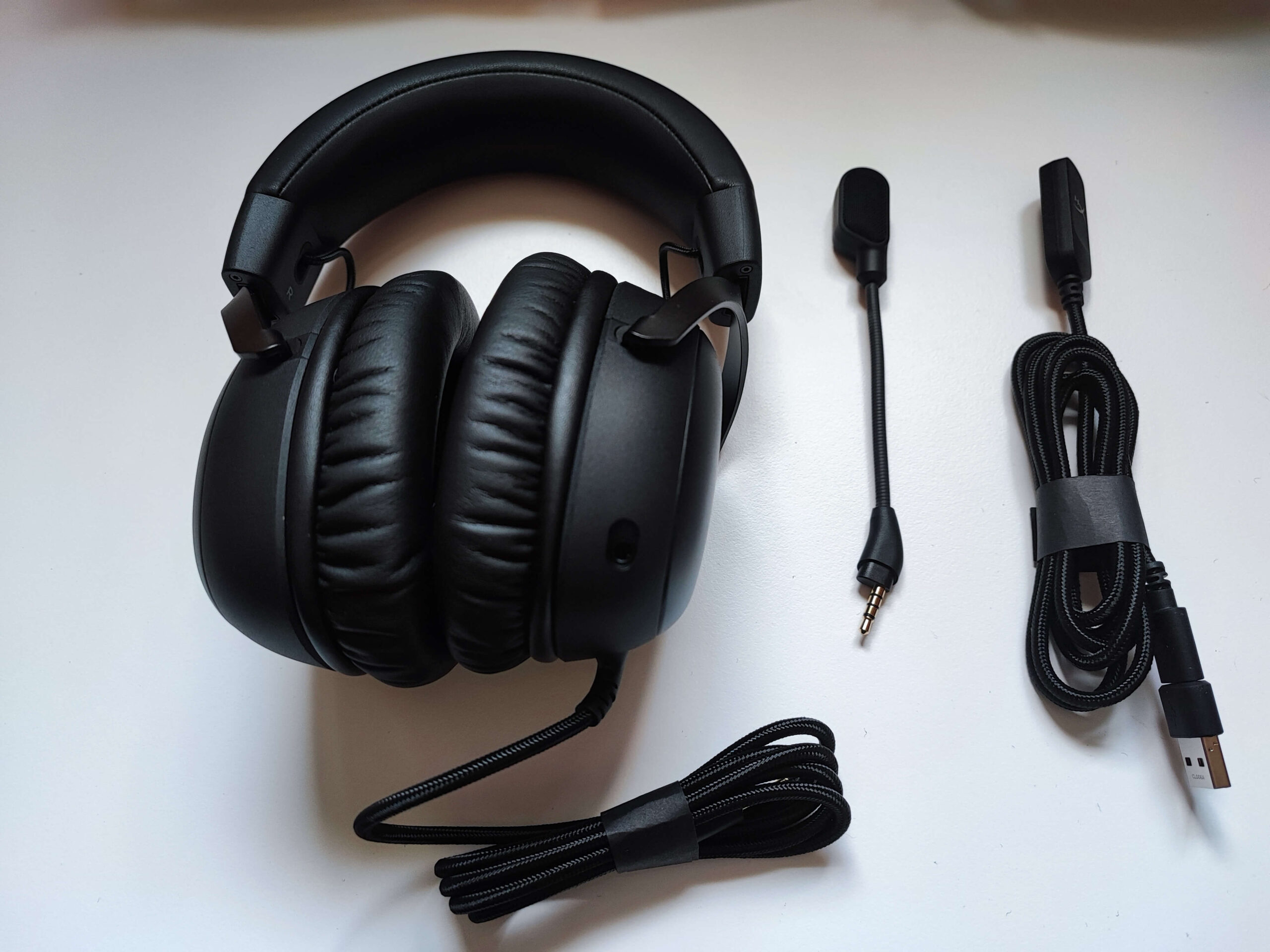Jak widzicie, słuchawki HyperX Cloud III możemy podłączyć do wielu różnych urządzeń za pomocą trzech kompatybilnych końcówek. W pudełku znajdziemy także mikrofon zamontowany na długim, giętkim oraz odłączanym pałąku. Oczywiście nie zabrało też ulotek i szybkiej instrukcji – to wszystko. Niestety firmy HyperX nie mogę teraz pochwalić za bogate wyposażenie, jak to miało miejsce osiem lat temu. Przypomnę tylko, ze w pudełku Cloud II umieszczono dodatkowe dwa welurowe pady na słuchawki oraz woreczek.