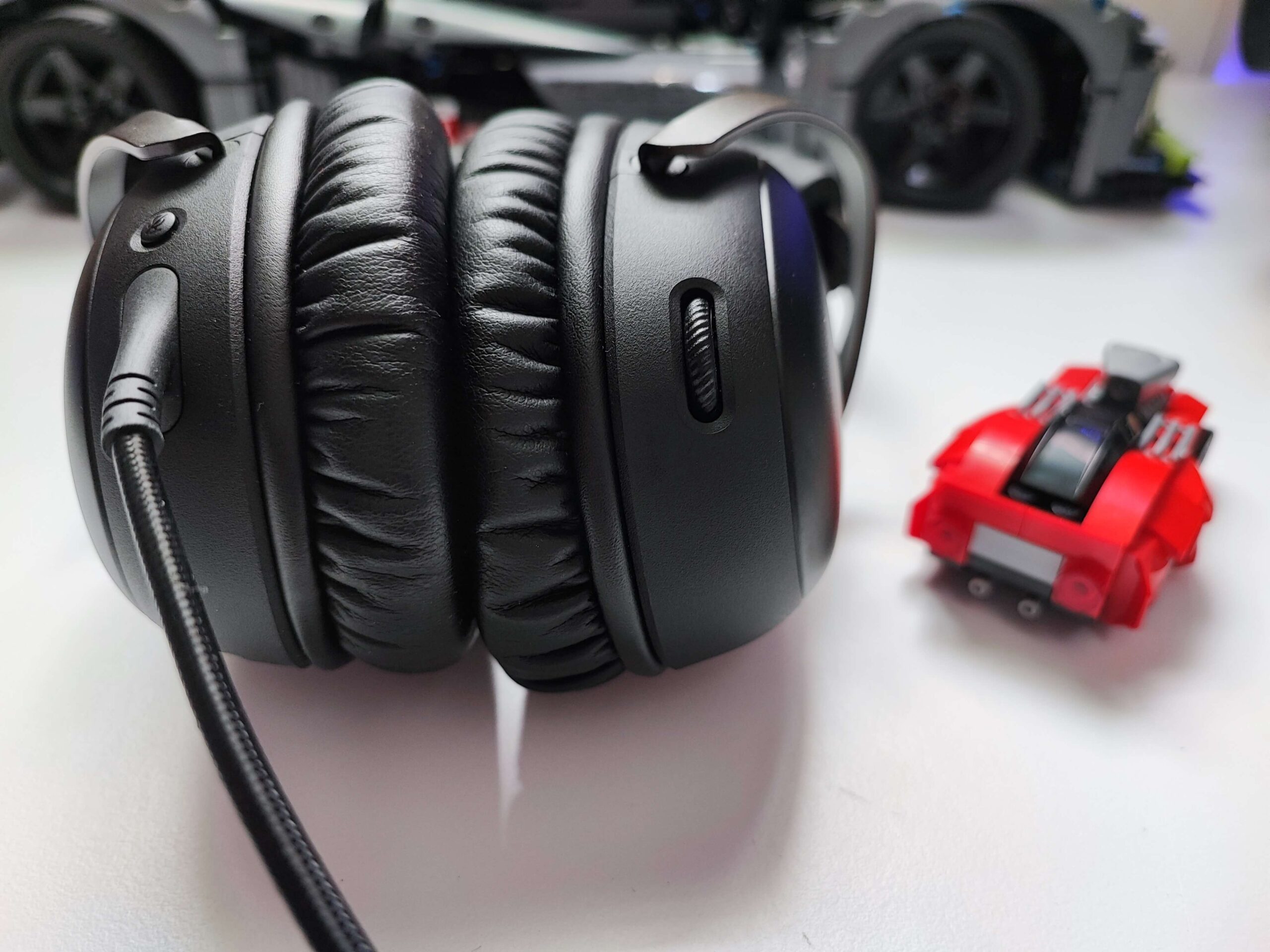 Jest jeszcze jedna znacząca różnica między Cloud II i III. “Dwójki” miały na kablu USB umieszczonego pilota. Za jego pomocą mogliśmy sterować głośnością słuchawek, jak i natężeniem mikrofonu. W “trójkach” zrezygnowano z tego pomysłu. Na prawej słuchawce mamy pokrętło od głośności, a na lewej przycisk od włączenia i wyłączenia mikrofonu. Czy jest to zmiana na plus czy minus zostawiam do własnej indywidualnej oceny. Ja jestem przyzwyczajony do przycisków umieszczonych w nausznikach.
