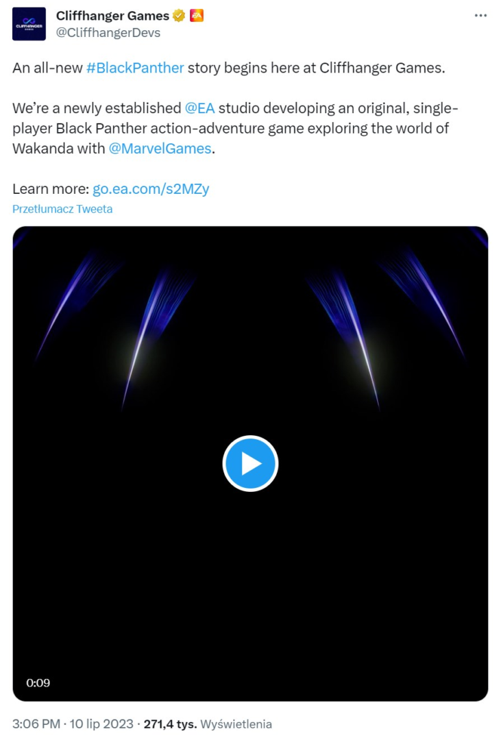 EA stworzyło nowe studio, które przygotuje kolejną grę opartą na licencji Marvela. Tym razem zdecydowano się opowiedzieć historię Czarnej Pantery.