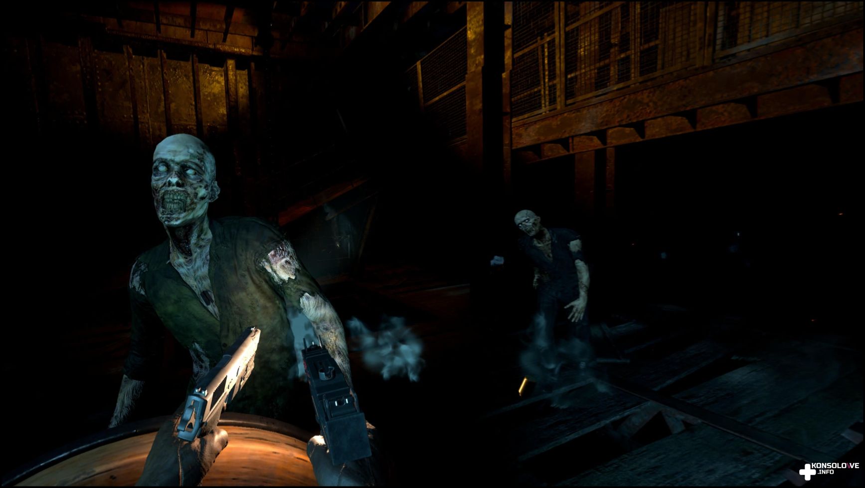 The Dark Pictures: Switchback VR zdecydowanie wiele zyskał dzięki najnowszej aktualizacji (dostępnej za darmo od dziś na PS5). Tekstury prezentują się zdecydowanie lepiej – choć nie ma oczywiście co liczyć na kolosalny skok graficzny. Nadal mamy przecież do czynienia z tym samym silnikiem graficznym. Bardzo dobrze wyglądają teraz również efekty związane z oświetleniem. Zwiększona ilość wyświetlanych klatek na sekundę w połączeniu z krótszymi czasami oczekiwania na dalsze części poziomów motywują do dalszego grania. Nie bez znaczenia jest także znacząco poprawiony wygląd przytwierdzonych do broni latarek. Miłym dodatkiem są również delikatne zmiany wyglądu niektórych przeciwników oraz dodanie uników części oponentów. Bez wątpienia warto było czekać na tę aktualizację i wszystkim niezdecydowanym polecam sięgnięcie po ten tytuł. W mojej opinii jest on jedną z najlepszych pierwszoosobowych gier akcji dostępnych na PlayStation VR2. Warto także zaznaczyć, że tym razem mamy zdecydowanie więcej elementów zwiększających mnożnik. Dzięki temu śrubowanie swoich wyników jest jeszcze przyjemniejsze niż przed aktualizacją – nawet na początkowych etapach. Mnożnik x10 na poziomach z Man of Medan nie jest teraz problemem, co widać na poniższym obrazku.