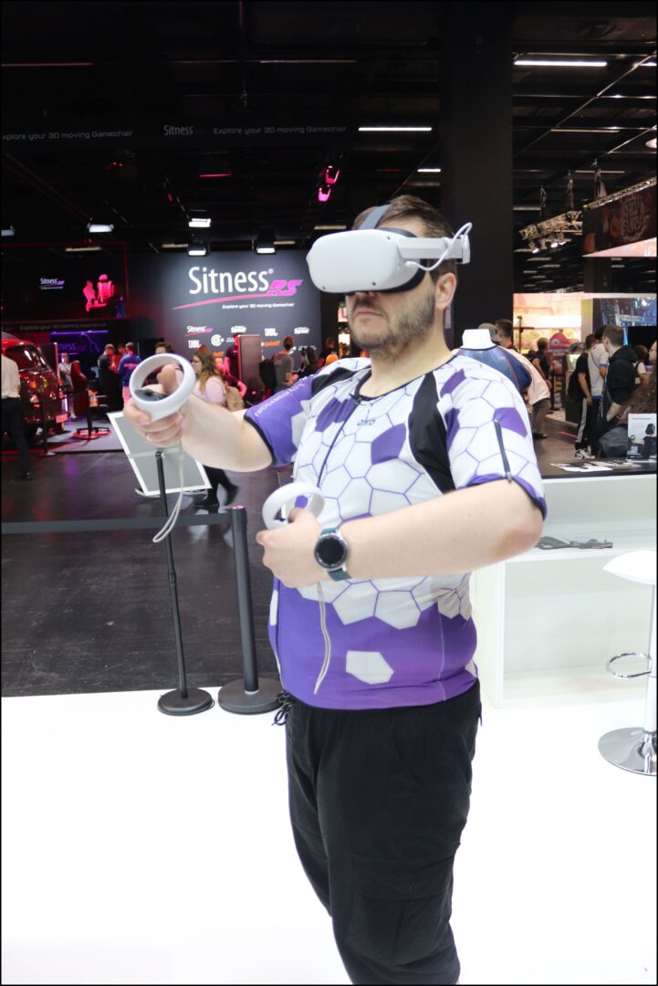Na plus na pewno zaliczam fakt, że obsługa stanowiska OWO na Gamescomie mówiła po polsku. Oczywiście nie była to idealnie płynna polszczyzna i wyraźnie było słychać obcy akcent, ale jednak samo mówienie po polsku było dla mnie sporym zaskoczeniem. Podobnie zresztą jak jakość wibracji w OWO Hapric Gaming Suit. Najkrócej ujmując – kamizelka mnie zdecydowanie nie zachwyciła. Wibracje – nawet mimo ustawienia mocy części z nich na wartości przekraczające nawet 30 – nie zdołały mi zaimponować. Były one porównywalne z wibracjami padów DualShock 4. Spodziewałem się zdecydowanie więcej. Być może to kwestia dema? Grałem w demko, w którym w jednej ręce miałem tarczę i w drugiej pistolet. Moim zadaniem była oczywiście obrona przed atakami i wyprowadzanie własnych ataków. No cóż… Czułem różnicę między zablokowanym tarczą strzałem, a faktycznym strzałem. Nie uważam jednak, aby był to obowiązkowy przedmiot w kolekcji gracza.