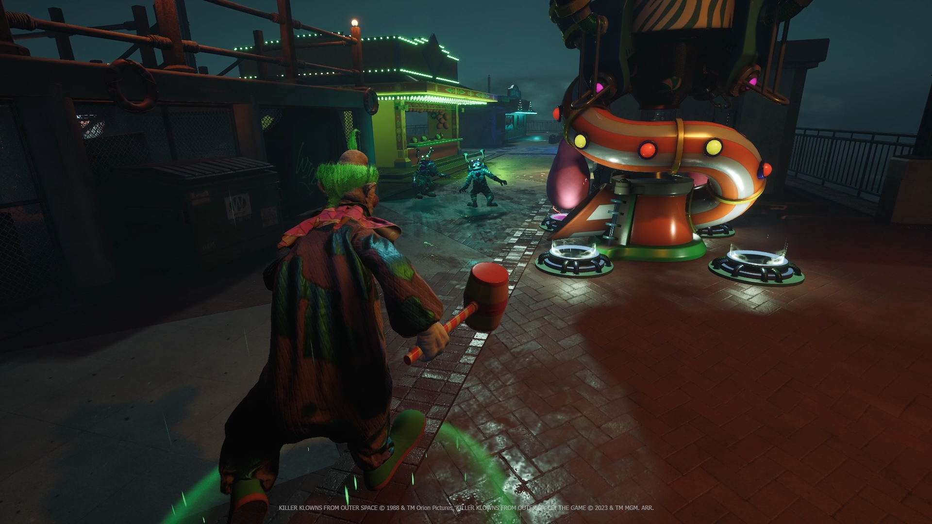 W Killer Klowns from Outer Space pojawią się odniesienia do lokacji i postaci z filmów. Rozgrywka była szybka, brutalna, śmieszna, a czysto z technicznego punktu widzenia stabilna i dopracowana. Mówi się, że gra wstępnie ukaże się w pierwszej połowie 2024 roku na konsolach PlayStation 4 i 5 oraz XBOX One i Series X/S.