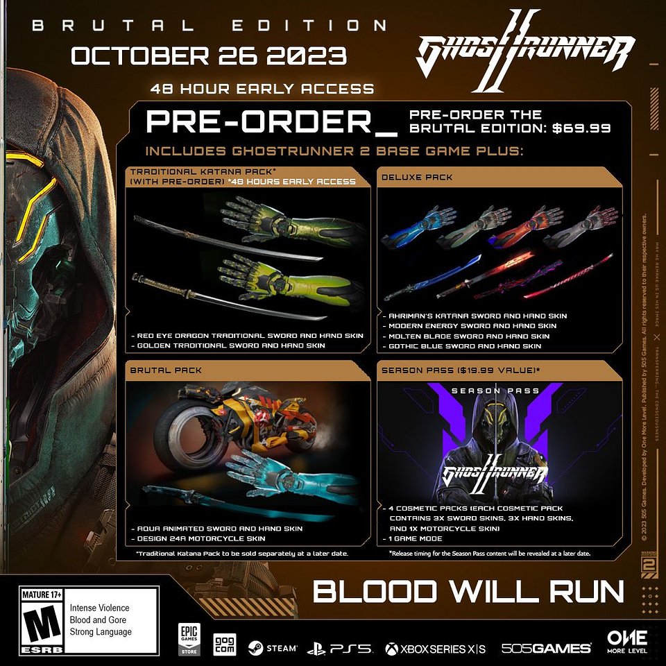 Z okazji ogłoszenia premiery Ghostrunner 2, twórcy z One More Level przygotowali nowy zwiastun oraz otworzyli zamówienia przedpremierowe. Dzięki Edycji Brutal możecie zagrać w Ghostrunnera 2 aż 48 godzin wcześniej.
