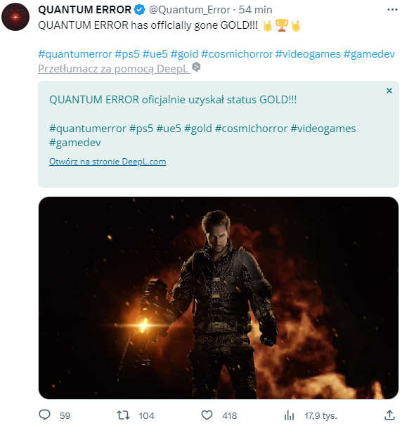 Na twitterze pojawiła się informacja o tym, że Quantum Error, nadchodzący kosmiczny horror akcji, jest już w złocie. Co ciekawe, nie podano jeszcze daty premiery.