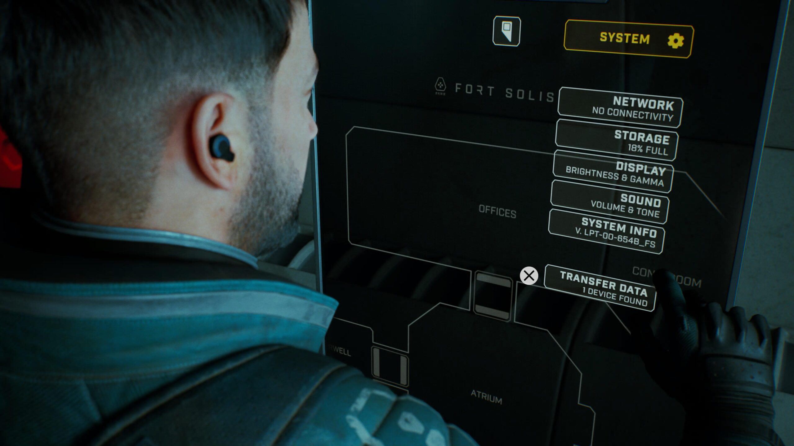 Skoro już jesteśmy przy strachu. W pewnym momencie sytuacja się zagęszcza, pojawia się przeciwnik, ale nawet to nie skłania sterowanej postaci do biegu. Myślicie sobie, że to utrudni rozgrywkę? Jak tu uciec, przemknąć się gdzieś, skoro można tylko chodzić? Tak, Fort Solis nie posiada nie tylko mechaniki biegu, ale również mechaniki skradania. Czy to stawia nas na straconej pozycji? Nie, po prostu wszelkie spotkania z przeciwnikiem są zaplanowane przez skrypty. Niestety, powoduje to utratę jakiegokolwiek napięcia związanego z przemieszczaniem się po bazie. Był tu potencjał związany z aktorami, grafiką, motion capture, a nawet scenariuszem. Niestety, decyzje podjęte przy projektowaniu rozgrywki pozbawiły tytuł napięcia, czyli jedynego elementu, na który tak naprawdę liczyłem. Obecność gry na PS5 sugerowałaby wykorzystanie możliwości pada DualSense. Niestety nie uświadczyłem w grze adaptacyjnych triggerów, szczegółowych wibracji, a nawet wykorzystania głośniczka. Wzorem mógłby tu być wspomniany już The Callisto Protocol, gdzie immersję potęgowało właśnie wykorzystanie najnowszego kontrolera PlayStation.