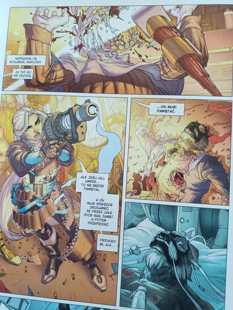 Recenzowany komiks ma fenomenalny początek. Czujemy się zdezorientowani, zresztą podobnie jak sam Kill Psi Łeb. Sen łączy się z jawą, co zresztą jeszcze nie raz potrafiło mnie zaskoczyć i w dalszej części historii. Może nie ma tutaj dowcipów na każdej stronie, ale komiks został okraszony naprawdę dużą dozą czarnego humoru. Oczywiście, znajdziecie tu liczne odniesienia do świata Incala. Bardzo się cieszę, że przeczytałem opowieść o Killu już po zapoznaniu się z Przed Incalem. Jestem pewien, że sięgnę po Kill Psi Łeb jeszcze raz, ale już po lekturze właściwej serii. Na pewno wychwycę wtedy jeszcze więcej smaczków pozostawionych w tym komiksie.