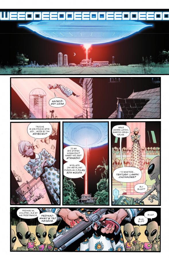 Przyznacie, że taka mieszanka to dosyć abstrakcyjny pomysł. Być może dużym wydawnictwom wydał się nawet zbyt ryzykowny. Takie firmy mają przecież w swoich portfelach wielu znanych superbohaterów, a nawet grupy superbohaterskie, których przygody i tak się sprzedadzą — po co więc rzucać monetą w przypadku nowego pomysłu? Czy to było powodem wydania Plot Holes poprzez kampanię crowdfundingową? Trudno będzie to teraz stwierdzić. Wiadomo jednak, że po sukcesie kampanii na indiegogo komiks trafił również do oficjalnej dystrybucji sklepowej. W Polsce dostępny jest dzięki Non Stop Comics, zobaczmy więc, jak ten szalony pomysł sprawdził się na papierze.