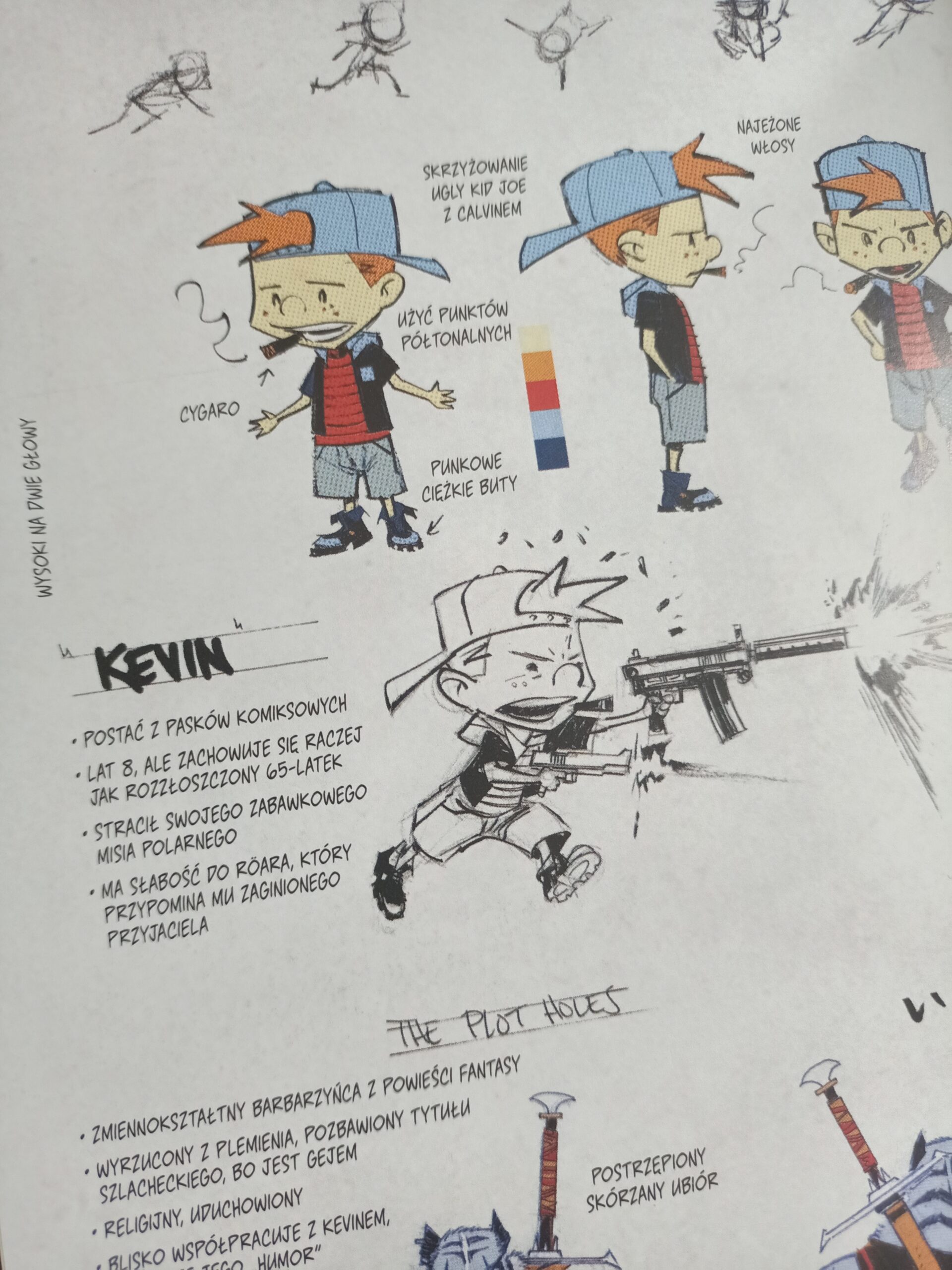 Jednak w Plot Holes ciężko pisać o samej fabule i oddzielić ją od rysunków. Poszczególni bohaterowie rysowani są inną kreską, na przykład wywodzący się z mangi Johny czy Kevin wyglądający jakby wyjęto go z komiksowych pasków rodem z lat 20. minionego wieku. W przypadku tego ostatniego bohatera widać nawet punktowe kolorowanie — tak charakterystyczne dla starszych publikacji. Wymieniłem moje dwie ulubione postaci, ale obok nich zobaczymy również wiele interesujących osobowości. Należą do nich Surge — antybohater z supermocami, Rasoir — zbuntowana piracka wampirzyca, czy w końcu Roar — zmiennokształtny humanoidalny kot. Grupie przewodzi redaktorka “Ed”, która postanawia zwerbować do grupy nowego członka — Cliffa Dinklewitza.