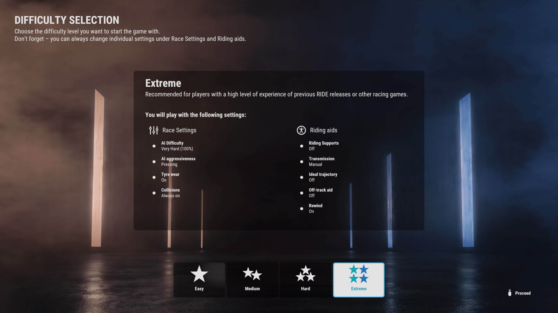 Tak można określić tegoroczną produkcję. Choć bardziej preferuję to na czterech kółkach, to i tym na dwóch można się na chwilę zainteresować. Na samym początku swojej drogi z tym tytułem otrzymujemy możliwość jazdy po ogromnej ilości trasach, na ok. 270 maszynach – oczywiście wszystko z czasem. Nie każdym motocyklem będziemy mogli wystartować na każdej trasie, bo wszystko zależy od kategorii. Pod względem graficznym RIDE 5 może się podobać, nawet bardzo. Graficznie wiele elementów zostało dopieszczonych i wykonanych z należytą starannością. Włosi ewidentnie się postarali, również z możliwością zmiany kamery w trakcie jazdy.