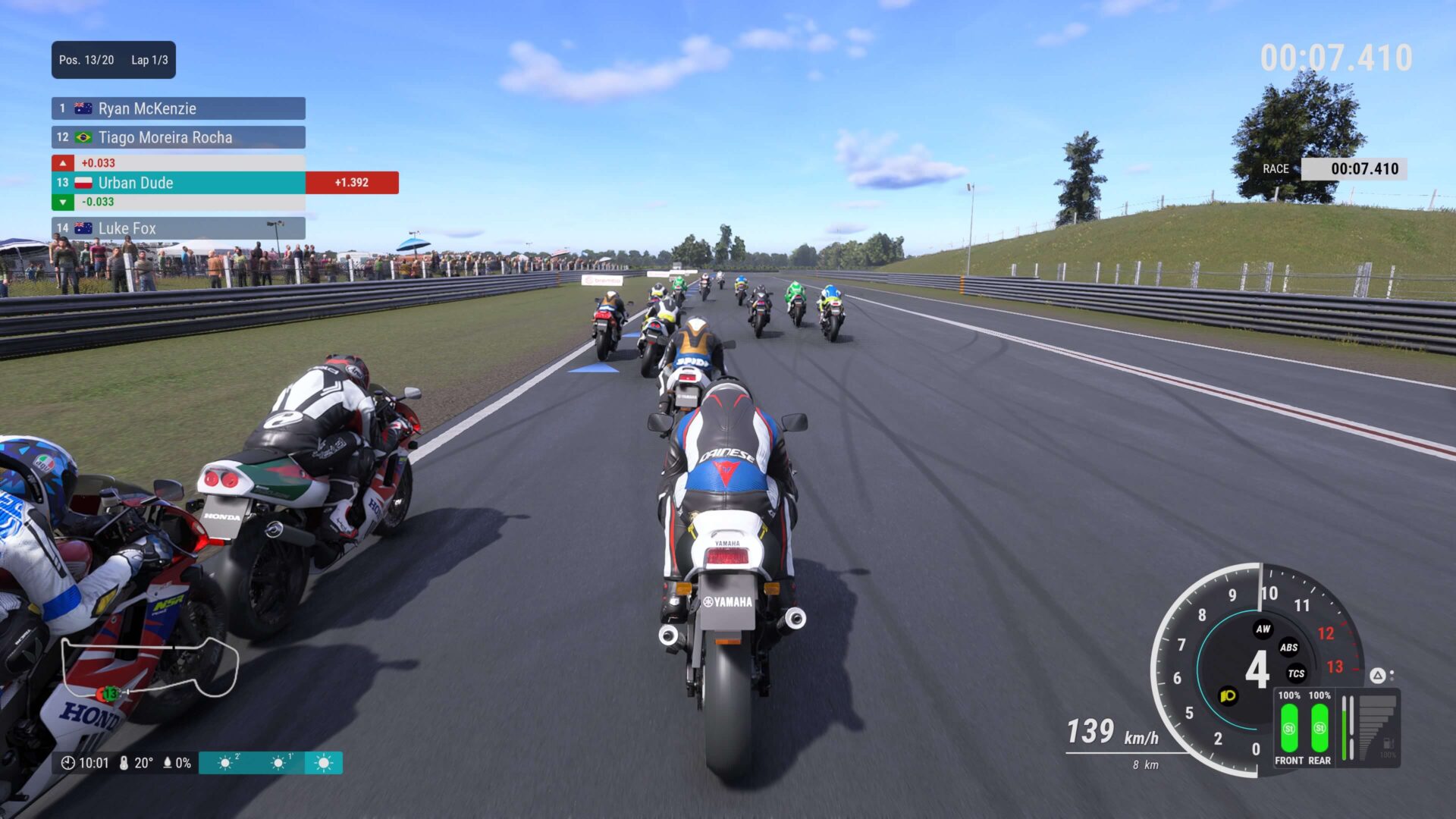 Ilość asystentów bije na łeb na szyję wszystko to, co miałam okazję zobaczyć do tej pory w przeróżnych grach wyścigowych. Wspomagacze te głównie wykorzystać można do samego pokonywania wszystkich zakrętów, hamowania, czy też kontrolowania przepustnicy. Czy pomaga to w idealnym pokonywaniu toru? Niekoniecznie, ponieważ na najprostszym poziomie trudności i aktywnych asystentach, okazało się, że nie jestem w stanie dogonić przeciwników. Kilka godzin wraz ze swoim facetem główkowałam dlaczego, ale wiecie co? Do dzisiaj nie wiemy. Co by się nie wydarzyło i jakbym się nie starała, każdy wyścig kończę na miejscu numer 20. No ktoś musi zamykać listę, prawda?