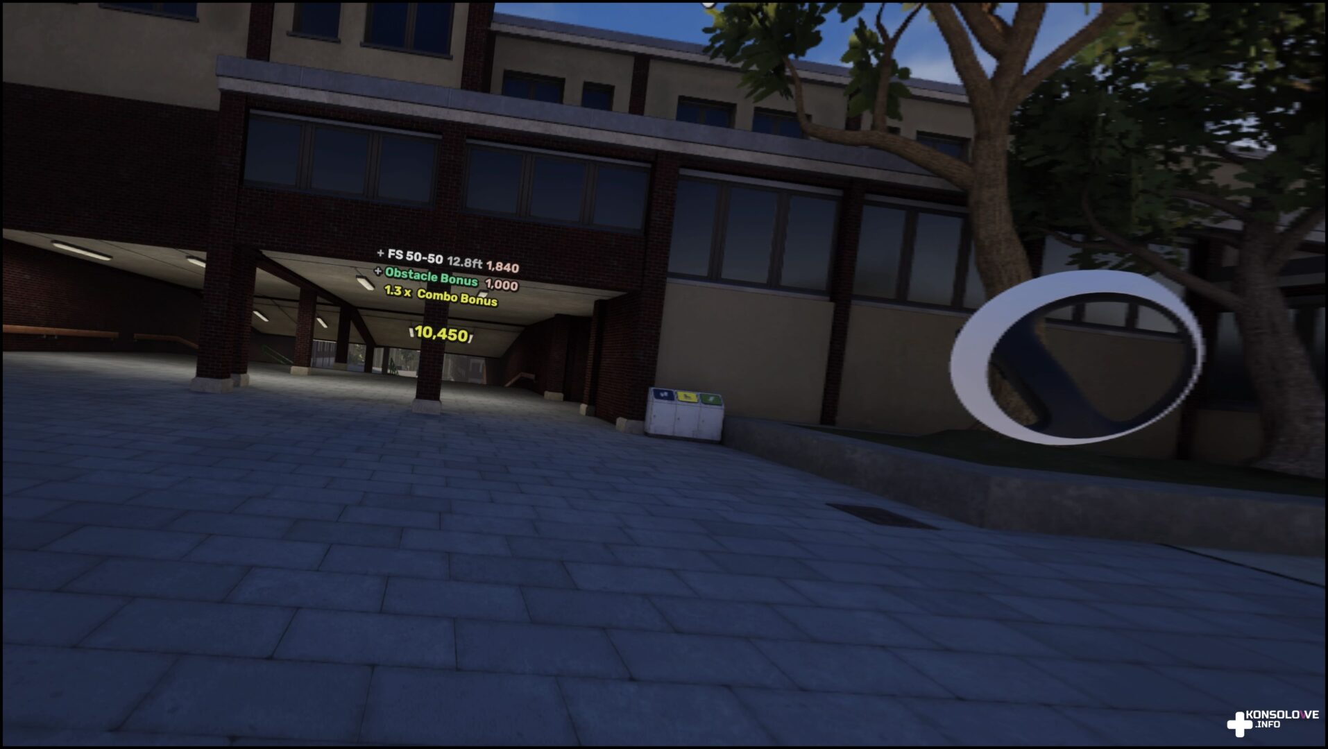 Na wirtualnej deskorolce możemy jeździć przede wszystkim, przemierzając fragmenty miasta i pokonując zabudowania. Na ulicach znajdziemy liczne rampy, poręcze i ściany służące do wykręcania jak największych wyników. Mamy też tryb swobodnej jazdy szkoleniowej. Dzięki niemu możemy jeździć jak długo chcemy i po postu odprężać się w goglach. Nie brakuje też bynajmniej etapów szkoleniowych. Zdecydowanie warto je przejść. Dowiemy się tu, jak przyspieszać i sterować, skakać i wykonywać triki, hamować, czy lądować na desce. Treningi są bardzo dobrze zrealizowane i nie minie wiele czasu, a instynktownie będziecie odpowiednio się układać do wykonywania trików. Znajdziemy również tryb wyzwań, nastawiony na wykonanie konkretnej sekwencji – tryb jest przystępny, aczkolwiek niektóre wyzwania są dość wymagające. Na szczęście wczytywanie etapów jest błyskawiczne, więc nie tracimy motywacji do podejmowania kolejnych prób. Nie brakuje także sekwencji misji w kilku lokacjach. Miejsca, w których będziemy wykonywać triki są zróżnicowane. Będziemy bowiem jeździli na przedmieściach, w szkole, przy biurowcach czy na przykład na placu budowy. Na pewno nie można narzekać na monotonne lokacje. Niżej możecie zobaczyć krótki fragment rozgrywki, w którym przemierzam szkołę na desce.