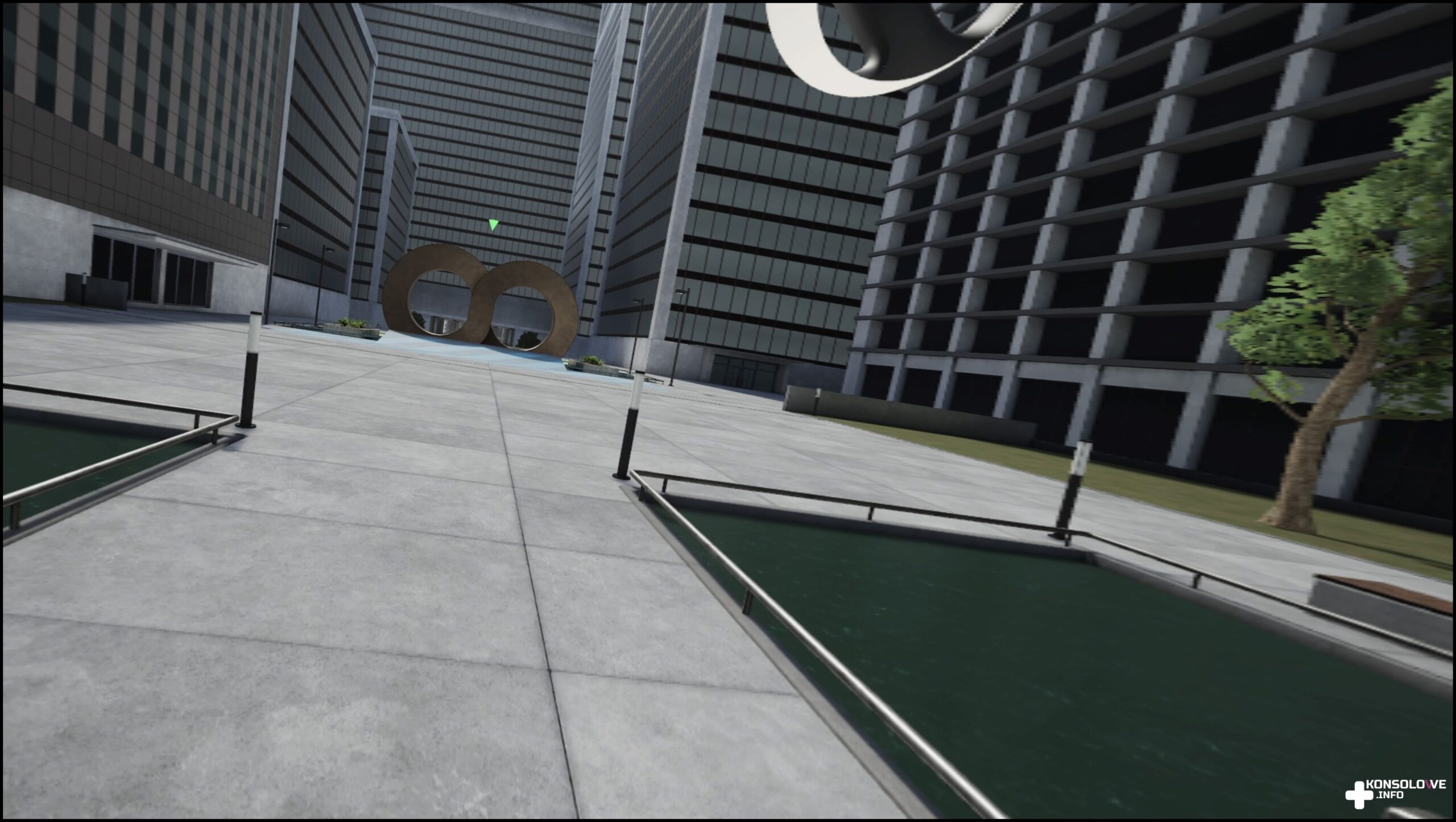 Na wirtualnej deskorolce możemy jeździć przede wszystkim, przemierzając fragmenty miasta i pokonując zabudowania. Na ulicach znajdziemy liczne rampy, poręcze i ściany służące do wykręcania jak największych wyników. Mamy też tryb swobodnej jazdy szkoleniowej. Dzięki niemu możemy jeździć jak długo chcemy i po postu odprężać się w goglach. Nie brakuje też bynajmniej etapów szkoleniowych. Zdecydowanie warto je przejść. Dowiemy się tu, jak przyspieszać i sterować, skakać i wykonywać triki, hamować, czy lądować na desce. Treningi są bardzo dobrze zrealizowane i nie minie wiele czasu, a instynktownie będziecie odpowiednio się układać do wykonywania trików. Znajdziemy również tryb wyzwań, nastawiony na wykonanie konkretnej sekwencji – tryb jest przystępny, aczkolwiek niektóre wyzwania są dość wymagające. Na szczęście wczytywanie etapów jest błyskawiczne, więc nie tracimy motywacji do podejmowania kolejnych prób. Nie brakuje także sekwencji misji w kilku lokacjach. Miejsca, w których będziemy wykonywać triki są zróżnicowane. Będziemy bowiem jeździli na przedmieściach, w szkole, przy biurowcach czy na przykład na placu budowy. Na pewno nie można narzekać na monotonne lokacje. Niżej możecie zobaczyć krótki fragment rozgrywki, w którym przemierzam szkołę na desce.