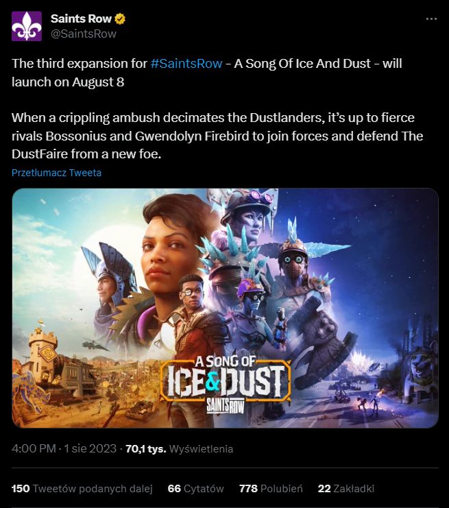 Saints Row ukazało się w polskiej wersji językowej na konsolach PlayStation 4, PlayStation 5, Xbox One oraz Xbox Series X|S. Gra obsługuje tryb sieciowej współpracy, a została wydana przez Plaion Polska. Warto wspomnieć, że produkcja ta jest dostępna również na komputerach i działa także na wariantach mobilnych – Steam Decku oraz ASUS-ie ROG Ally. Gracze komputerowi z pewnością docenią fakt, że już 24 sierpnia przygody Świętych trafią na platformę Valve. Dzięki temu tytuł ten będzie można kupić nie tylko w sklepie Epica, ale również na Steamie.