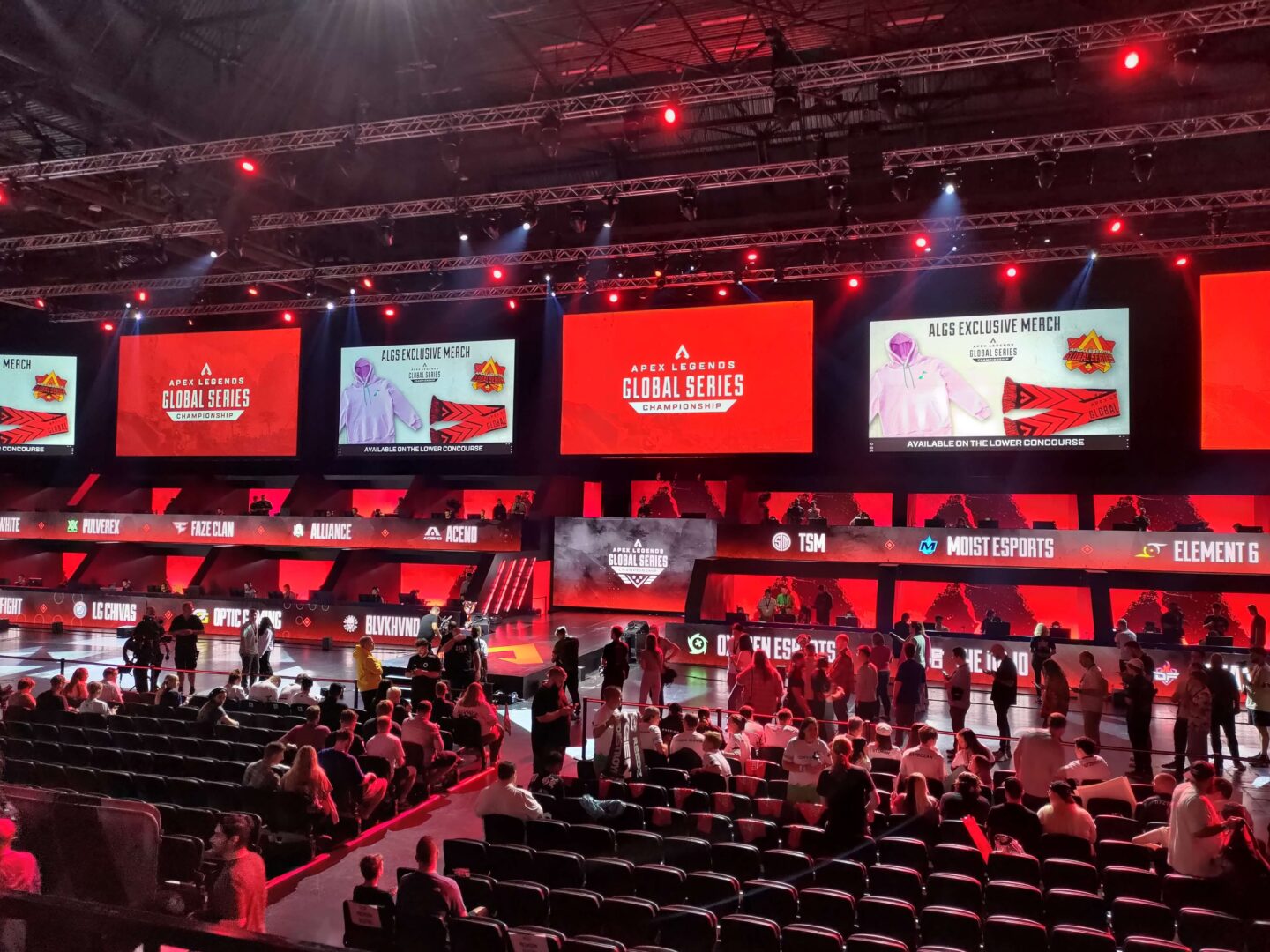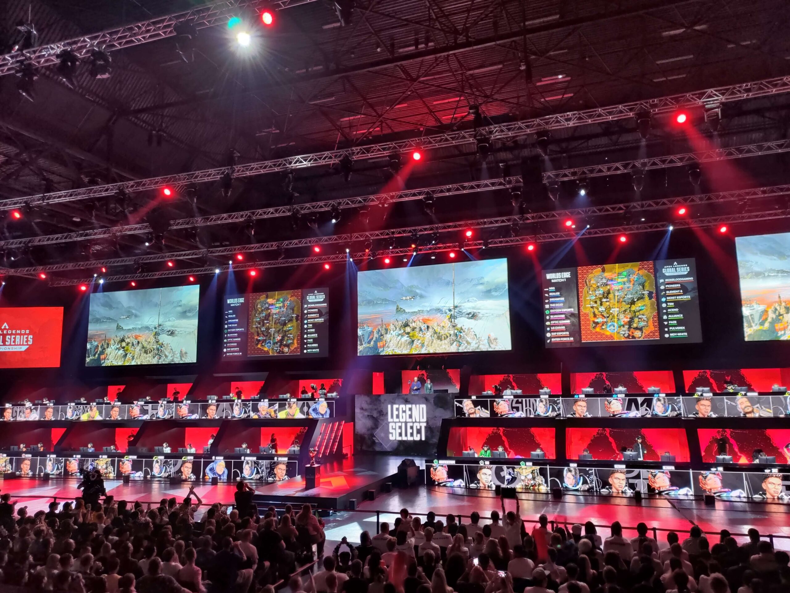 Specjalne zasady ostatnich rozgrywek to minimum sześć gier. Dwie gry na World’s Edge, dwie na Storm Point i tak na przemian. Już pierwsze gry to sporo emocji, jasne, ale gdy pierwszy zespół przekroczył próg 60 punktów, nagle widownia przestała im kibicować – nawet ci, którzy chcieli żeby ich zespół wygrał, nie byli gotowi na koniec tegorocznego ALGS. Publiczność buzowała, gdy docieraliśmy do ostatnich ringów, gdy na polu bitwy zostały ostatnie trzy teamy. I tak, wszyscy cieszyli się, gdy zespoły z wysokimi wynikami zostały szybko wyeliminowane – znaczyło to przecież, że jeszcze trochę pooglądamy.
