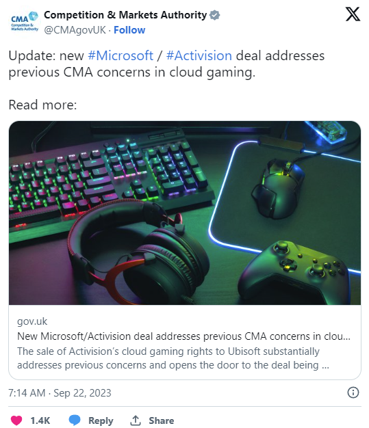 Jeśli śledzicie z zapartym tchem przejęcie Activision przez Microsoft to wiecie, że ostatnią stroną, która musi powiedzieć ceremonialne “tak” jest brytyjska CMA. Regulatorzy do tej pory sprzeciwiali się tej transakcji, skupiając swoje wątpliwości na usłudze gier w chmurze.