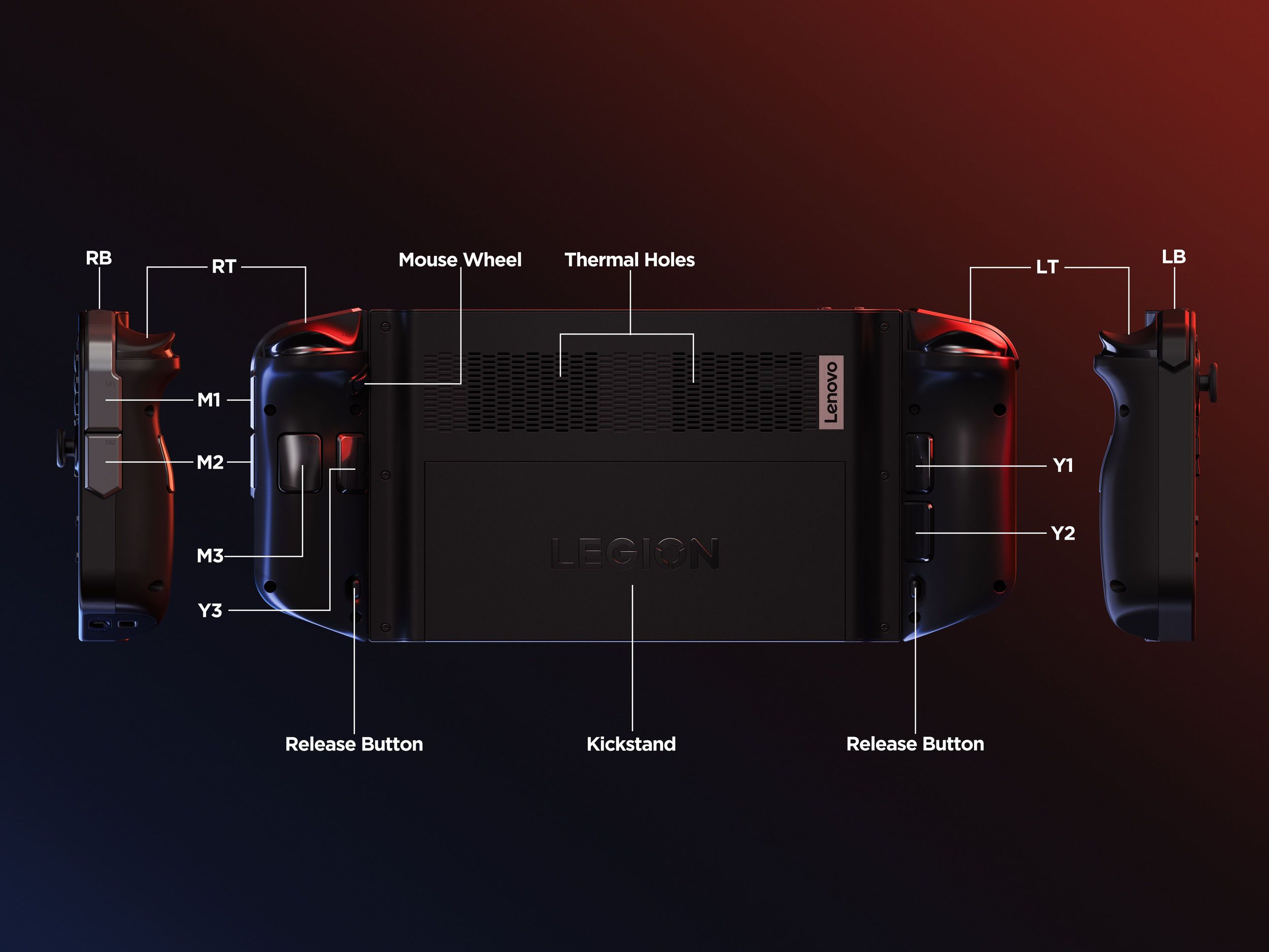 Kontrolery Lenovo Legion Go wyposażone są w joysticki z efektem Halla. Te oznaczają brak dryfu joysticka i minimalną liczbę martwych stref. To maksymalizuje responsywność i dokładność podczas wyczerpujących sesji gamingowych. Inne przyciski oferują między innymi zintegrowany gładzik, duży pad kierunkowy, ustawione pod kątem kółko myszy. Łącznie 10 możliwych do przypisania przycisków bocznych, spustów i przycisków uchwytu. Podświetlenie RGB znajduje się na przycisku zasilania ozdobionym ikonicznym „O” Lenovo Legion. Ten zmienia kolory, wskazując tryb wentylatora wybierany przez użytkownika, a konfigurowalne pierścienie RGB wokół joysticków dodają kolejnej warstwy elegancji. Pełniąc jednocześnie funkcję systemu powiadomień dla parowania kontrolerów. Co więcej, kontrolery Legion TrueStrike w Lenovo Legion Go można odłączyć, aby zapewnić większą elastyczność stylu gry. A także włączyć tryb FPS w przypadku spontanicznych sesji gier FPS. Tryb FPS pozwala użytkownikowi odłączyć kontrolery od korpusu Lenovo Legion Go i wykorzystać tylną podpórkę, aby postawić go na powierzchni. Prawy, odłączany kontroler umieszcza się w dołączonej podstawie kontrolera, którą mocuje się za pomocą magnesu. A oko optyczne w dolnej części kontrolera pozwala na bardziej precyzyjne celowanie i kontrolę niezbędną podczas kompetytywnych gier FPS, podobnie jak przy użyciu myszy.